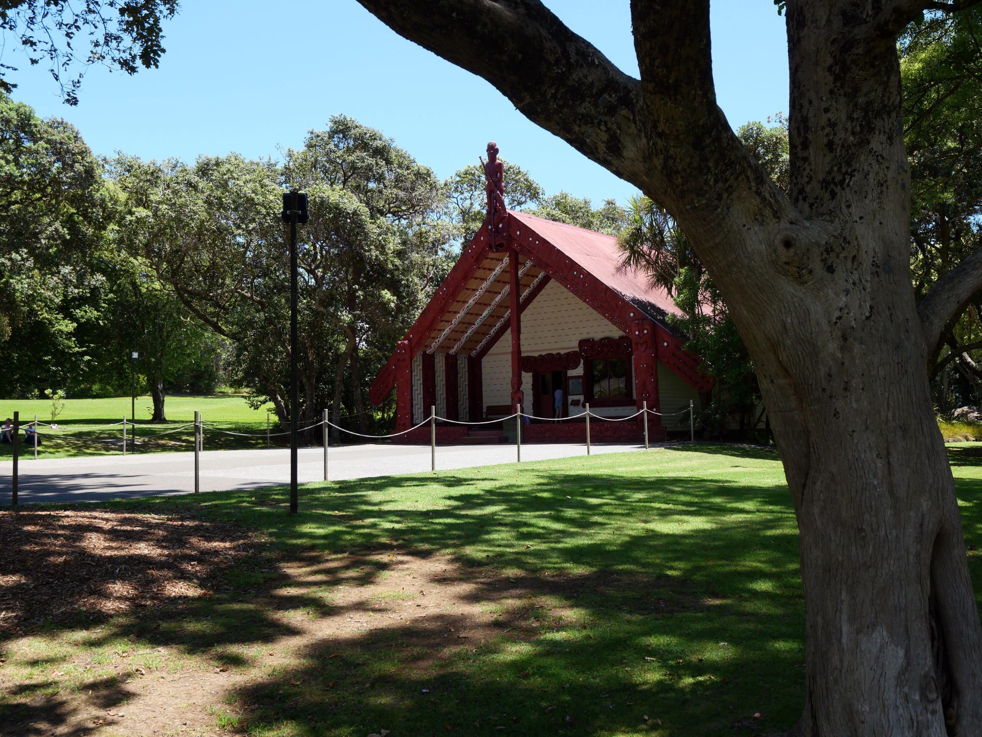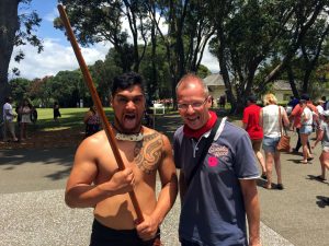 Hier hatte ich übrigens ein besonderes Erlebnis. Zur Ausstellung gehörten auch eine Führung so wie eine kulturelle Veranstaltung der Māori. Ich Stand in der ersten Reihe der Veranstaltung um schöne Fotos machen zu können. Dann wurde ein Volunteer gesucht, der den Part der Engländer bei den Verhandlungen übernehmen sollte. Es traf mich, da irgendwie keiner wollte und „Nein“ sagen wollte ich auch nicht. So durfte ich vortreten und mit einer netten Māori an meiner Seite die Englische Position bei den Verhandlungen übernehmen. Ich durfte somit Auge in Auge erleben, wie die Māori ihre Verhandlungen durchführen. Kreisende Speere, Aufgerissen Augen und Drohgebärden und ich sollte nicht zurückweichen und keine Angst zeigen. Alles gut gemeistert! Dann wurde mir ein Blatt auf den Boden gelegt, welches ich aufheben und ehrfurchtsvoll wieder zurücktreten durfte. Dann wurde ich und alle Abwesenden ins Haus gebeten. Hier musste jeder Chiefs seine Rede halten. Ich auch. Toll, was sollte ich sagen 🙂 Aber egal, einfach schwätzen auf gut schwäbisch gesagt. Nachdem ich das dann auch überstanden hatte bekam ich einen Ehrenplatz 🙂 Es wird mir in Erinnerung bleiben!