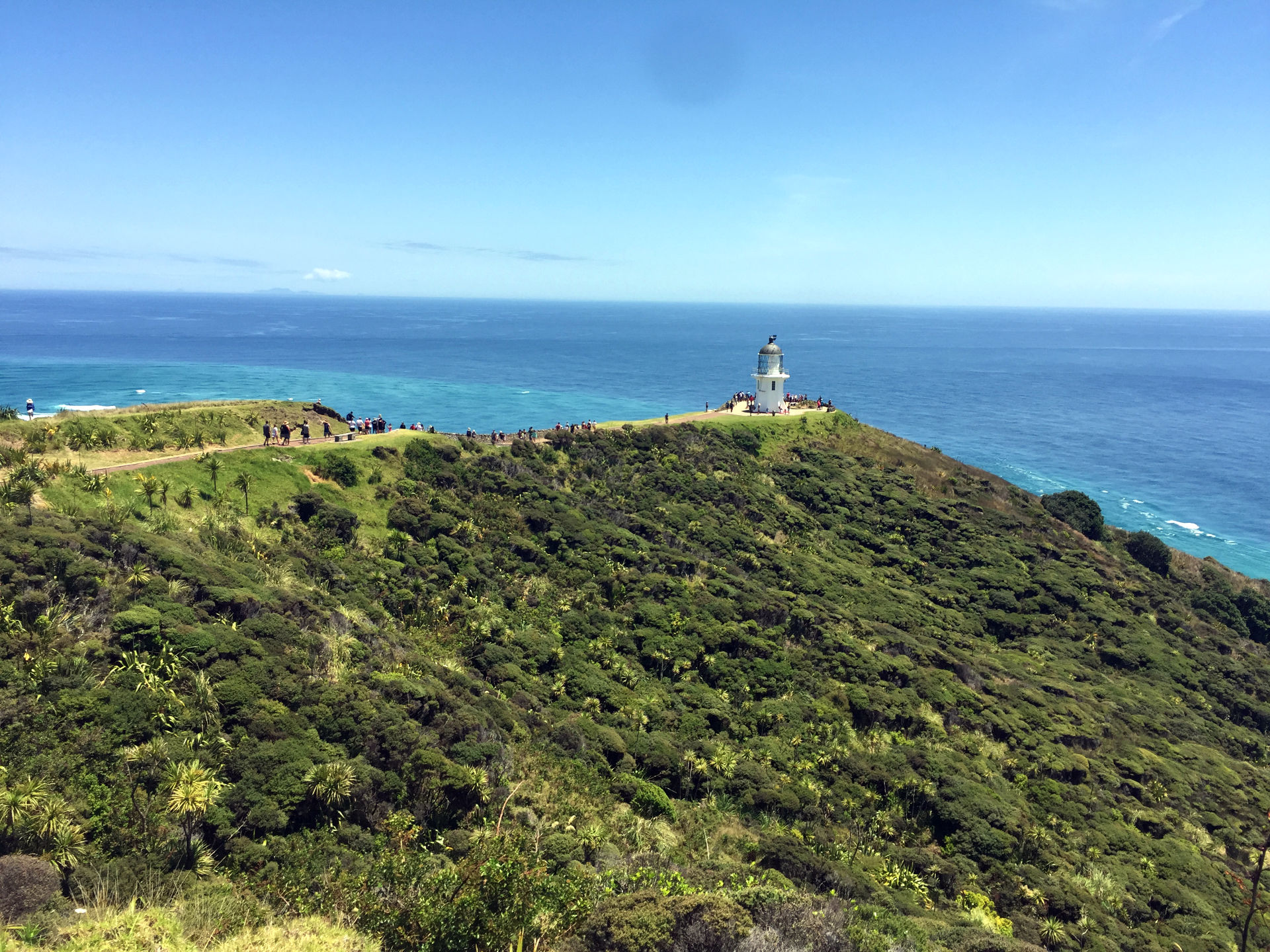 Am nächsten Morgen ging es dann weiter an die Nordspitze nach Cape Reinga. Hier wollte ich auf einen der nächst gelegenen Campingplätze Übernachten. Beide voll und dann hab ich beschlossen mir nur das Cape anzusehen. Auch am Cape waren Menschenmassen! Eine kleine Völkerwanderung. Nein, das ist nicht was ich möchte und hab beschlossen mich mehr Abseits zu bewegen. Ich hoffe es klappt. Zumindest meine nächste Unterkunft die ich mir heraus gesucht hatte war der private Campingplatz Travellers Hut abseits der Hauptstrecke. Ja, es war wirklich Abseits. Ich hatte mir eine tolle Strecke durch die Berge, schön gemütlich herausgesucht. Auch mein Navi spiele mit. Nur, das es sich hier zur Hälfte um eine Schotterstecke durch die Berge handelte wusste mein Navi und ich nicht. Ich kann nur sagen, viele werden hier mit einem Camper nicht gefahren sein. Die Stecke von Takahue nach Herekino war schon abenteuerlich und ich war froh sie hinter mich gebracht zu haben. Aber es war nun wenigstens Abseits, so wie ich es wollte 🙂