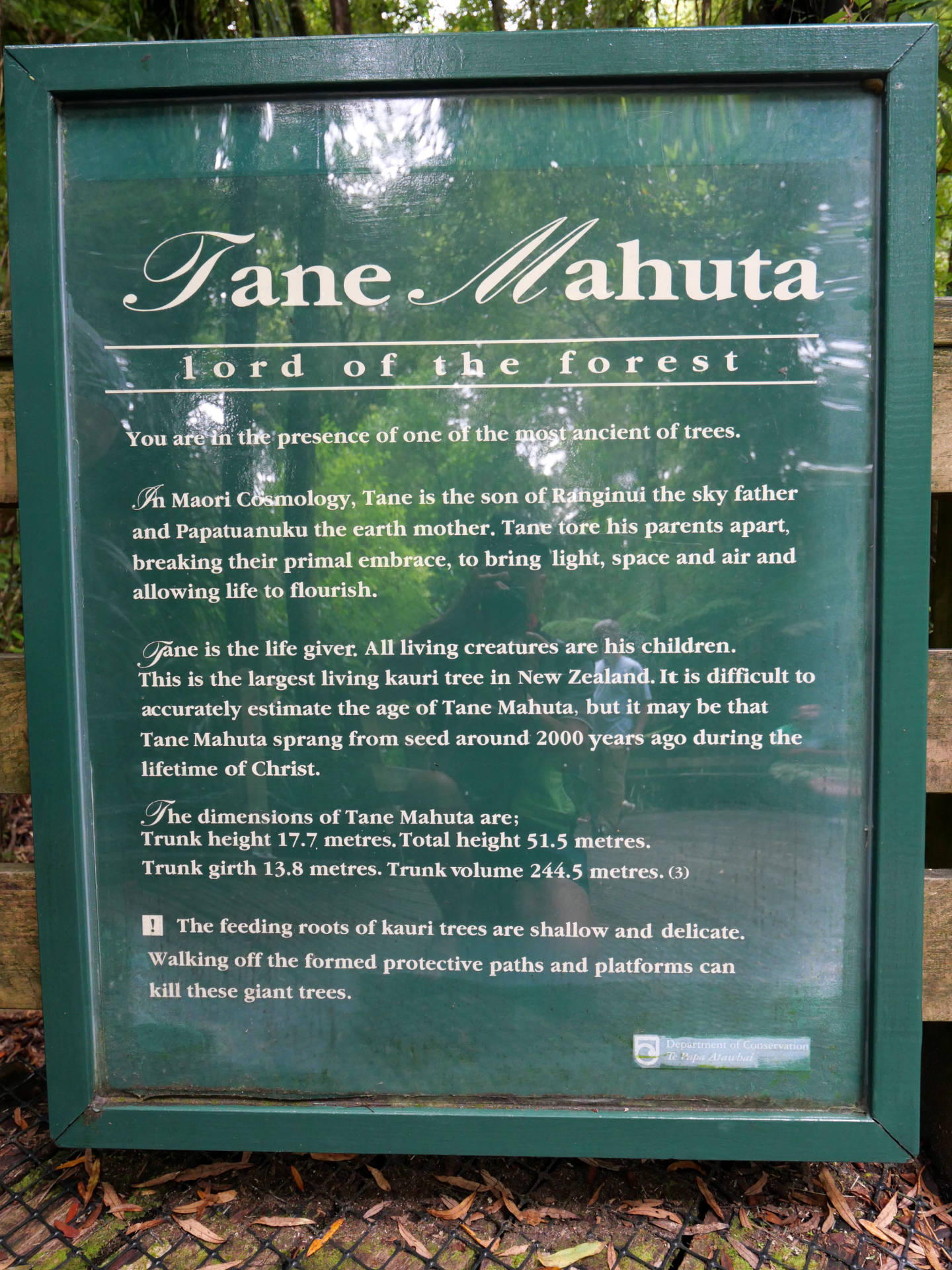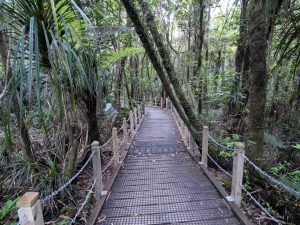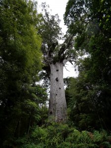 Am nächsten Tag ging es dann an der Westküste weiter zum Waipoua Kauri Forest, wo der größte Kauri Baum steht. Die Anfahrt an der Westküste war herrlich. Kaum Verkehr und eine sehr Abwechslungsreiche Landschaft. Kulturlandschaft in Abwechslung mit Wäldern, die immer dichter wurden. Auch das Wolkenspiel am Himmel passte heute sehr gut dazu. Angekommen im Urwald kam dann der erste Regen. Nass wurde ich aber nicht, da der Wald so Dicht ist. Den Wald darf man nur auf einen abgesteckten Weg betreten und auch vor- und nach dem Betreten müssen die Schuhe gereinigt werden.