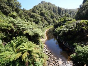 Der Weg zum Mt. Taranaki führt mich über den Forgotten World Highway SH43. Ein selten befahrener Highway über die endlose, grüne Hügellandschaft. Zu Beginn stand dann auch schon das erste Schild „Nächste Tankstelle in 150 km“! Ok, hier bin ich richtig. Sie führt von Traumarunui nach Stradford über4 Bergsättel und ist wirklich abgelegen. Selbst ein Abschnitt von 11 km unbefestigter Straße ist teil des Highways.