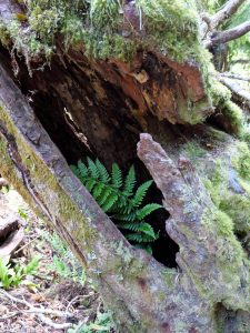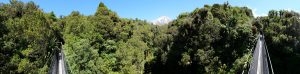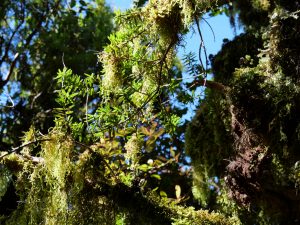 Die Stunden vergingen wie im Flug unter dem Blätterdach des Dschungels. Farne mehrer Meter hoch, Mose, Flechten, manche Bäume konnte man gar nicht mehr erkennen vor lauter Symbiosen – alles ineinander verwachsen. Es fehlten nur noch die Lianen. Dafür gab es aber über die verschiedenen Bachkäufe die eine oder ander Hängebrücke. Es war eine Tolle Wanderung über der immer der Mt. Taranaki thronte. Man sah ihn immer mal wieder, wenn das Blätterdach aufriss oder man die Baumgrenze erreichte. Am Ende gab es dann noch den Dawson Wasserfall inkl. dem historischen Kraftwerkshaus, das noch immer im Betrieb ist.