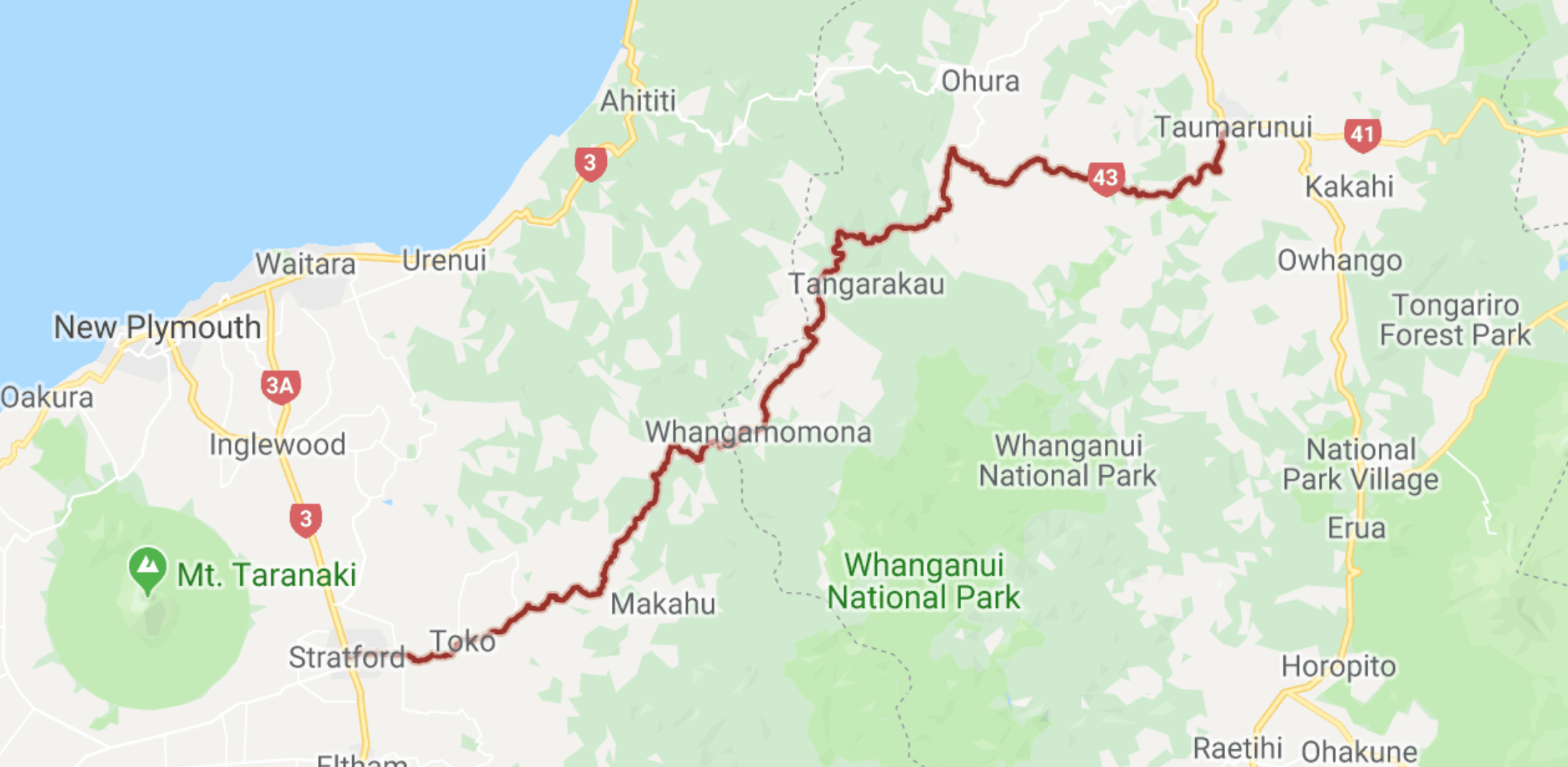 Der Weg zum Mt. Taranaki führt mich über den Forgotten World Highway SH43. Ein selten befahrener Highway über die endlose, grüne Hügellandschaft. Zu Beginn stand dann auch schon das erste Schild „Nächste Tankstelle in 150 km“! Ok, hier bin ich richtig. Sie führt von Traumarunui nach Stradford über4 Bergsättel und ist wirklich abgelegen. Selbst ein Abschnitt von 11 km unbefestigter Straße ist teil des Highways.