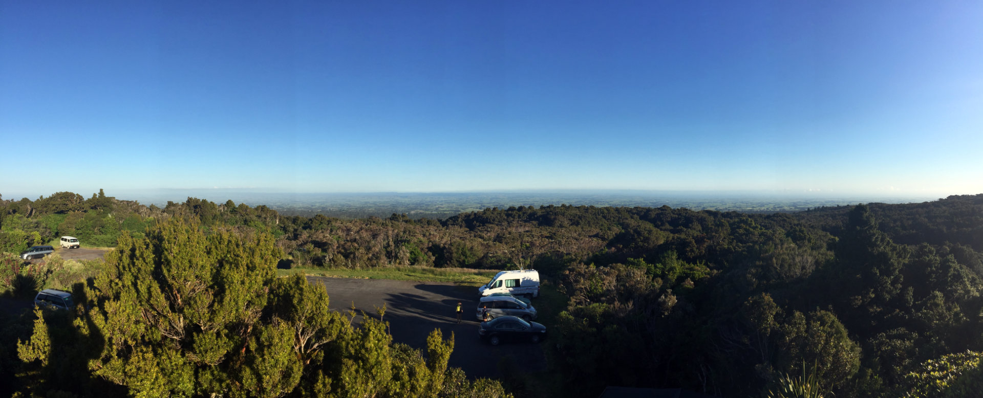 Mein Ziel nun der North Egmont Carpark von dem aus auch eine Besteigung der Mt. Taranaki möglich wäre. Oben angekommen dann Stau! Ja, man musste warten um auf den Parkplatz zu kommen. Nein, dachte ich mir und es muss Plan B herhalten. Also gewendet und ab Richtung Dawson Falls Visitors Centre. Von hier aus lassen sich auch schöne Wanderungen im Nationalpark unternehmen. Nur für eine Gipfelbesteigung eher ungeeignet. Aber das ist ja auch nicht notwendig. Die Entscheidung war richtig. Ein kleiner Parkplatz der nicht überfüllt ist und wo das übernachten auch erlaubt ist. Eine Traumhafte Aussicht!