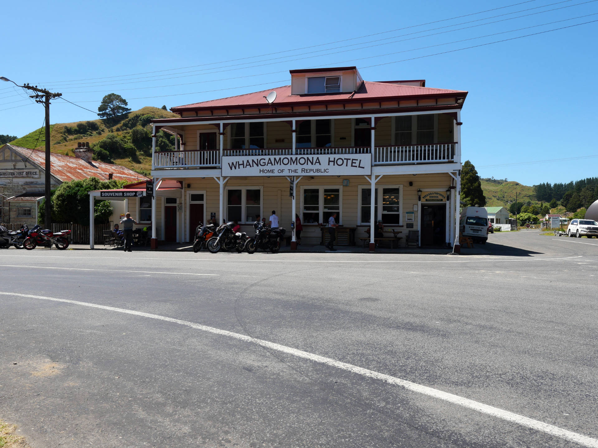 Nach knapp 2 Std und somit der Hälfte der Strecke erreicht man die Republik Whangamomona. Ja, richtig hier wird alle zwei Jahre einem Protest zu Ehren die Republik ausgerufen. Ein verträumter Ort in dem die Zeit stehen geblieben zu sein scheint.