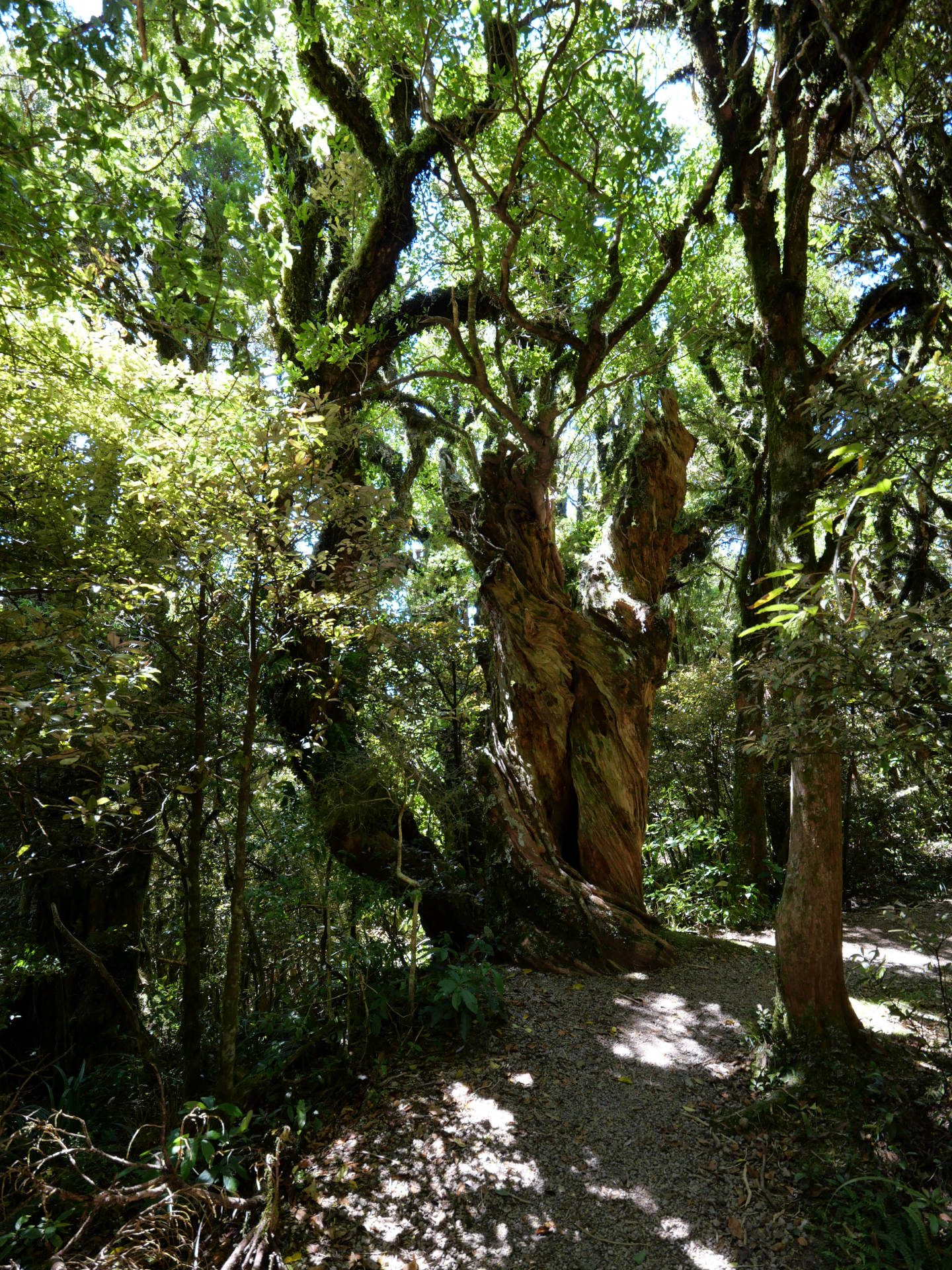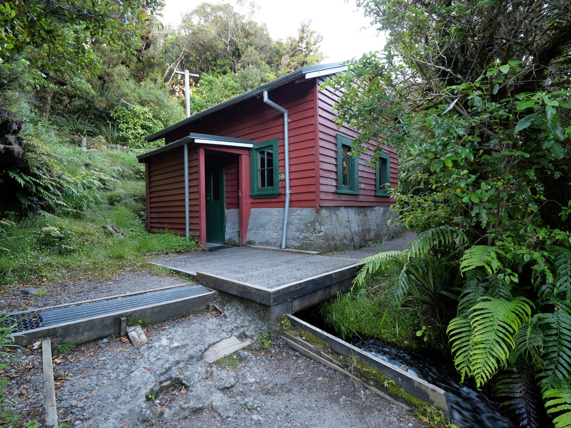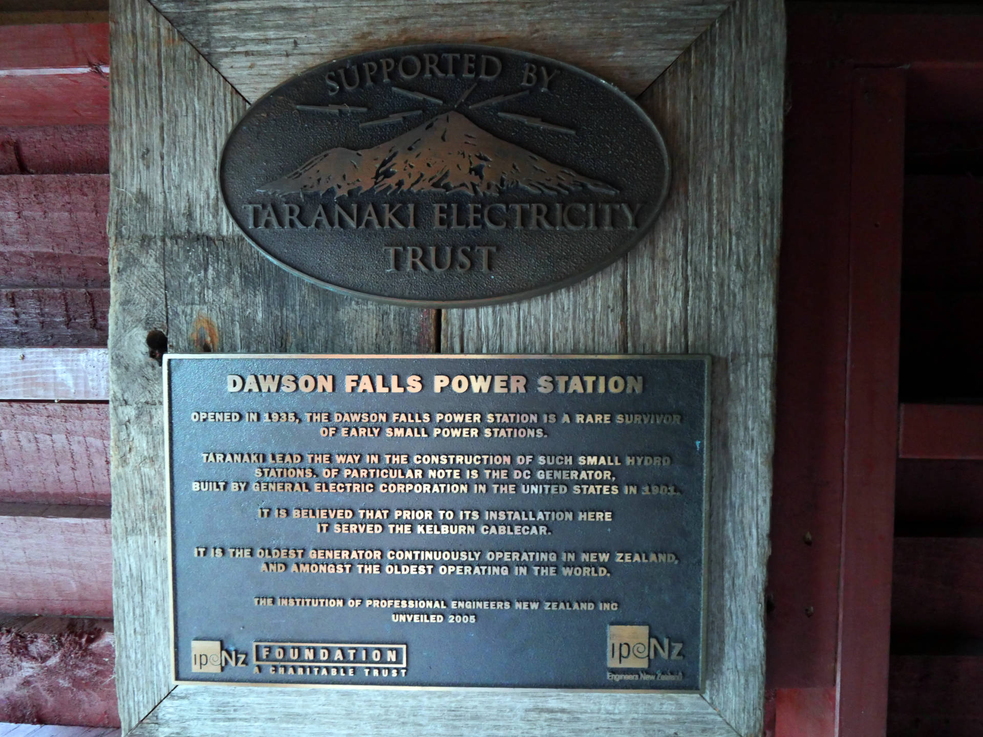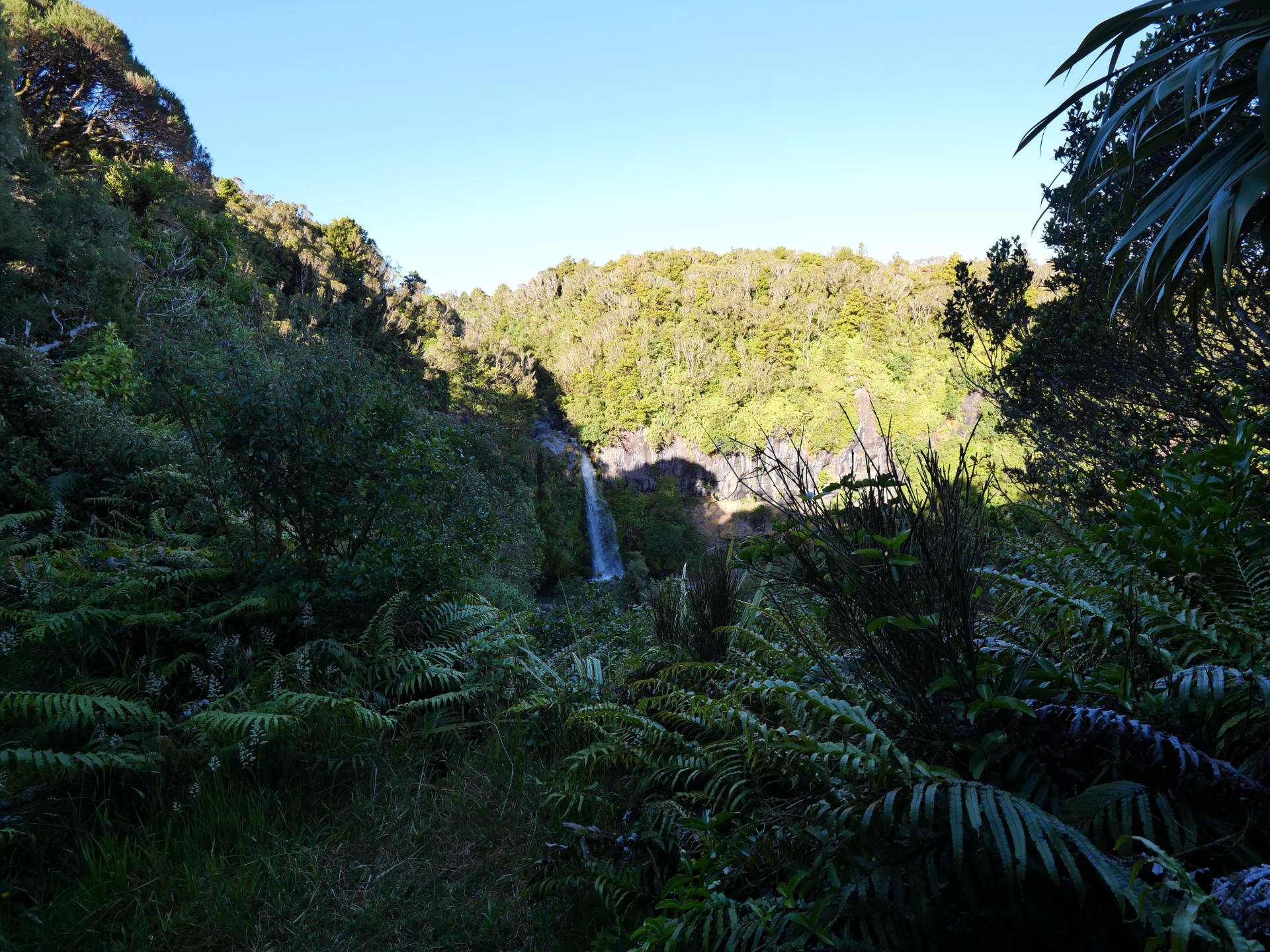 Die Stunden vergingen wie im Flug unter dem Blätterdach des Dschungels. Farne mehrer Meter hoch, Mose, Flechten, manche Bäume konnte man gar nicht mehr erkennen vor lauter Symbiosen – alles ineinander verwachsen. Es fehlten nur noch die Lianen. Dafür gab es aber über die verschiedenen Bachkäufe die eine oder ander Hängebrücke. Es war eine Tolle Wanderung über der immer der Mt. Taranaki thronte. Man sah ihn immer mal wieder, wenn das Blätterdach aufriss oder man die Baumgrenze erreichte. Am Ende gab es dann noch den Dawson Wasserfall inkl. dem historischen Kraftwerkshaus, das noch immer im Betrieb ist.