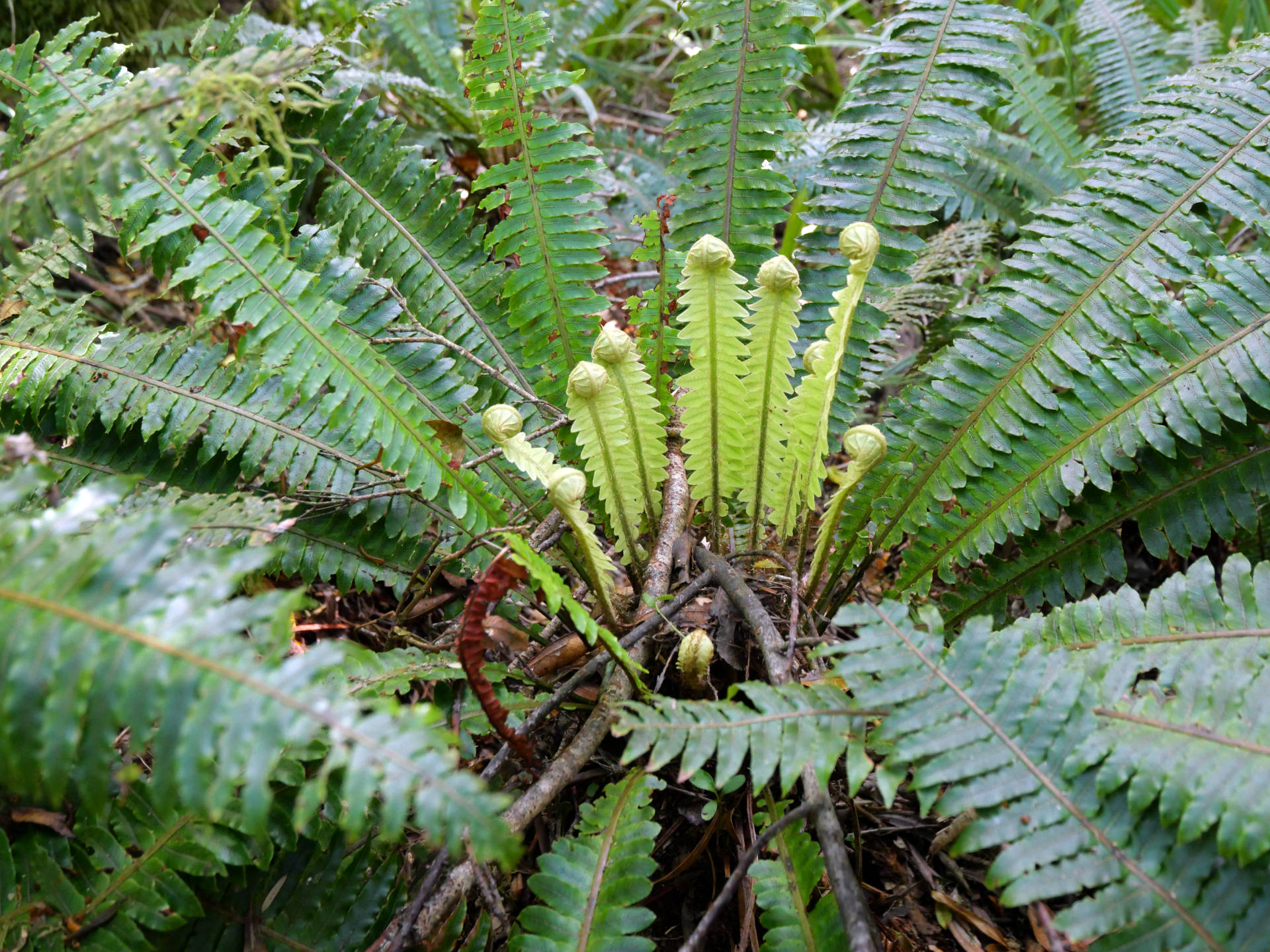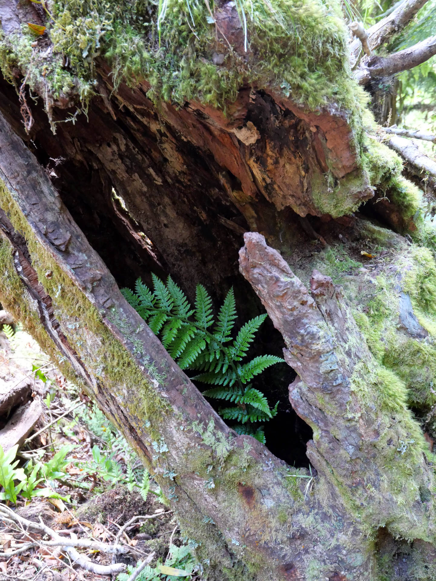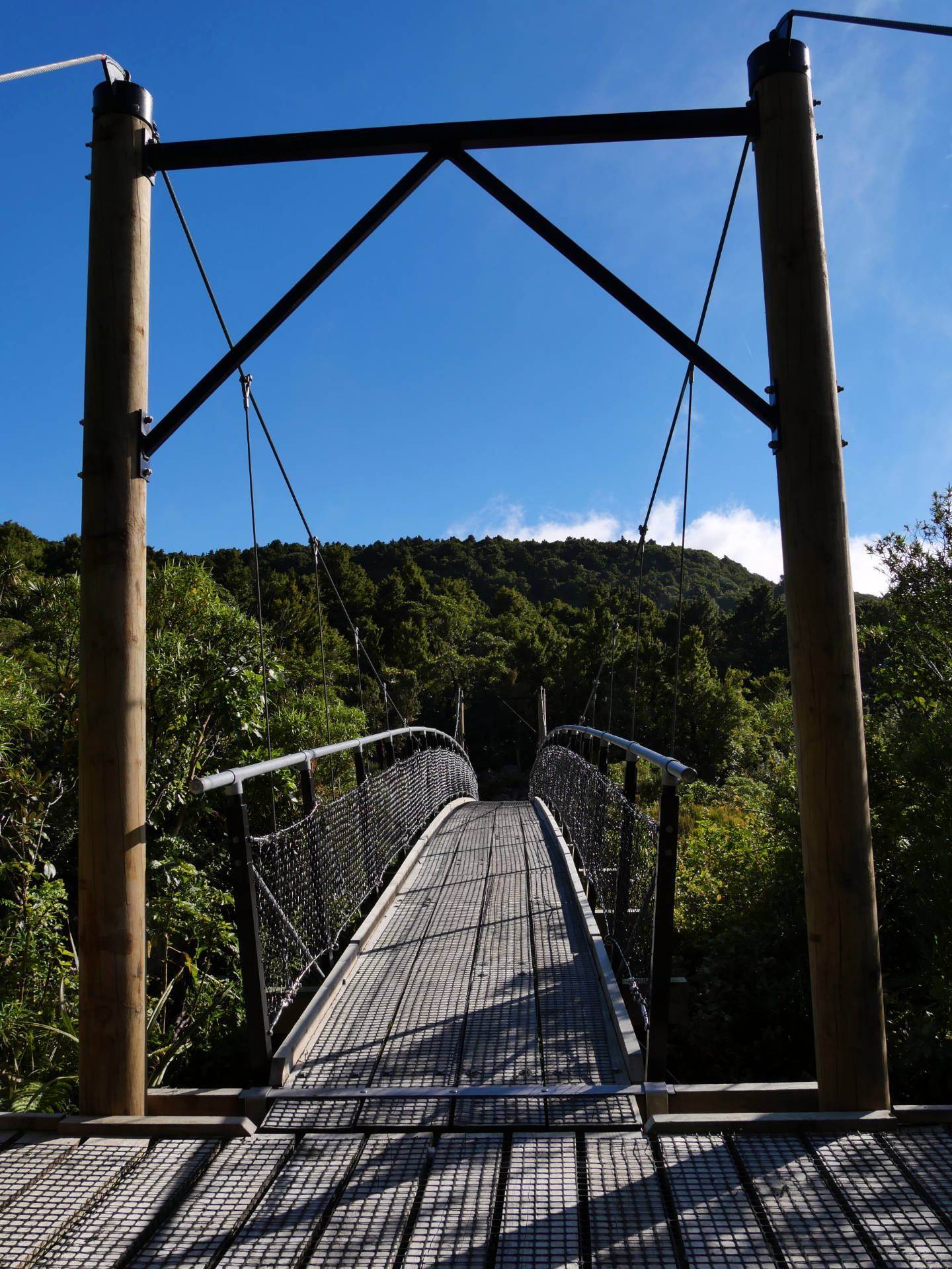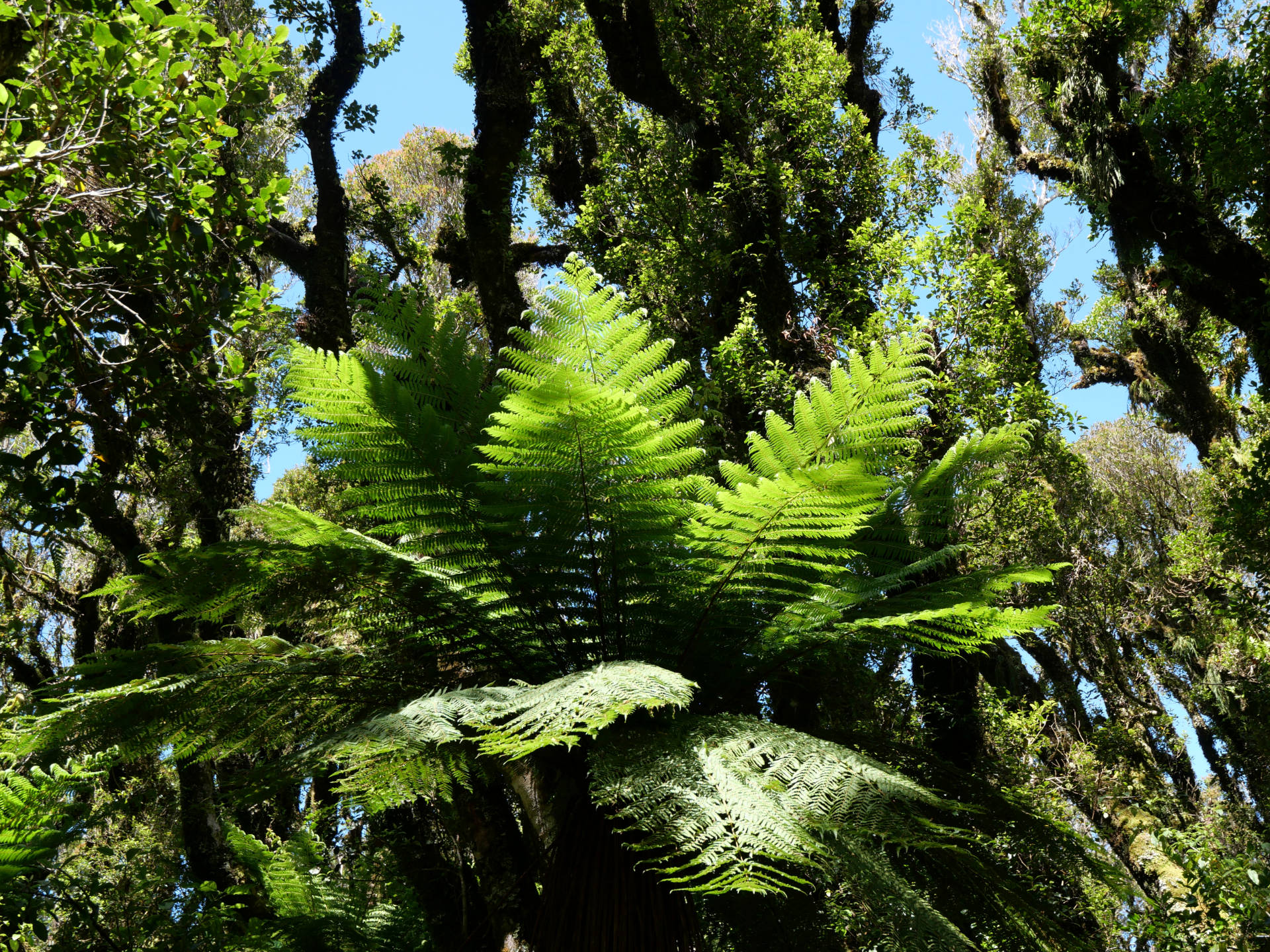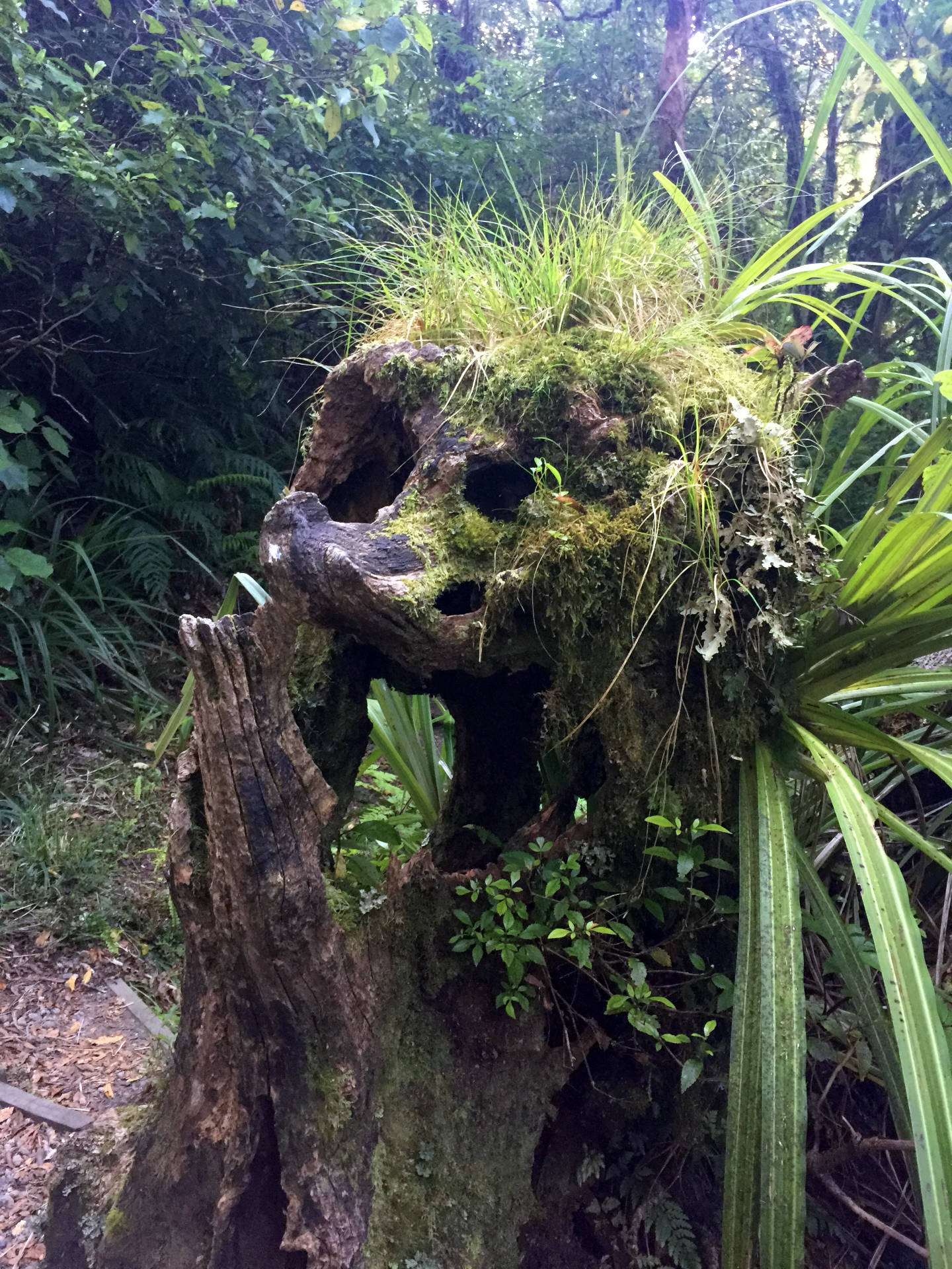 Die Stunden vergingen wie im Flug unter dem Blätterdach des Dschungels. Farne mehrer Meter hoch, Mose, Flechten, manche Bäume konnte man gar nicht mehr erkennen vor lauter Symbiosen – alles ineinander verwachsen. Es fehlten nur noch die Lianen. Dafür gab es aber über die verschiedenen Bachkäufe die eine oder ander Hängebrücke. Es war eine Tolle Wanderung über der immer der Mt. Taranaki thronte. Man sah ihn immer mal wieder, wenn das Blätterdach aufriss oder man die Baumgrenze erreichte. Am Ende gab es dann noch den Dawson Wasserfall inkl. dem historischen Kraftwerkshaus, das noch immer im Betrieb ist.