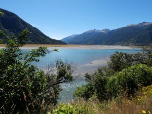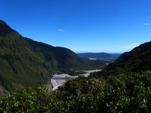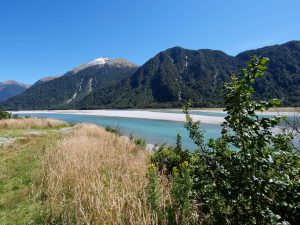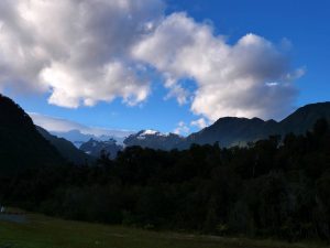 Kurz hinter Hokitika führt der Highway 6 ein wenig weg von der Küste ins Inland. Kulturlandschaft und Wälder wechselten sich ab. Vorbei an kleinen Seen bis es langsam aufwärts ging. Dann waren sie da. Die ersten Schneebedeckten Gipfel tauchten auf und Franz Josef war nicht mehr weit.