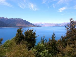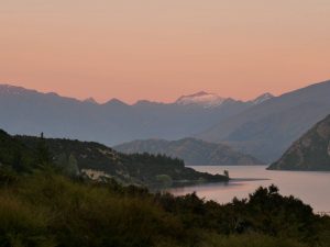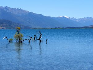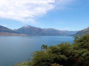 Kurz hinter dem Pass ändert sich dann die Landschaft relativ schnell. Der Wald wird spärlicher und es wird zum steppenartigen Hochland. Die ersten Scharfe und Rinder waren wieder zu sehen und dann erschien im dunklem blau der Lake Wanaka. Ein riesiger See von 42km länge.  Der Lake Hawea , ein weiterer Gletschersee, liegt gleich neben ihm und ist nur unwesentlich kleiner. Unglaubliche Farben eingebettet in einem grau-braun der übrigen Landschaft.