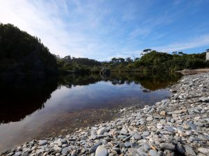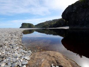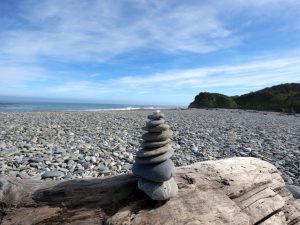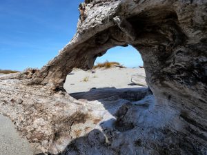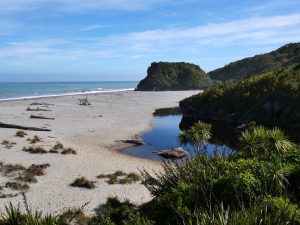 Kurz vor Haast führt die Straße wieder an die Küste zurück und da konnte ich mir das Zikaden-Schauspiel live am Knights Point anschauen. Überall in den Büschen auf den Geländern saßen sie und zirpten und knackten vor sich hin. Allerdings gab es hier auch Unmengen von den Draculas des Dschungels an der Westküste. Sanflies ohne Ende und sie hauten ihre Beißwerkzeuge unbetäubt ins Fleisch. Selbst mein Anti-Brumm hat sie einen feuchten Kehricht interessiert. So verließ ich den Platz fluchtartig und hoffte das es am Ship Creek besser wird. Mit einer zweiten Schicht Anti-Bumm und einem langen Oberteil ging es dann auch und ich genoß noch ein paar Momente am Strand der Westküste.