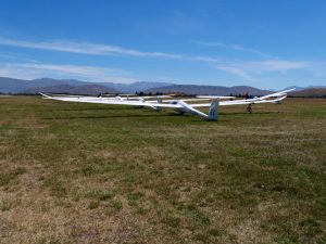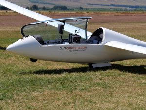 Pünktlich um 13:30 Uhr war ich wieder im Office und da war dann auch mein Pilot Norbert aus Rumänien, der den Sommer über hier in Neuseeland arbeitet. Sofort ging es los zum Rollfeld um die Vorbereitungen zu treffen. Flieger herrichten in Position schieben und Briefing. Rettungsfallschirm, Ablauf des Notausstiegs,  Funkkanal bei Start und Landung sowie in der Luft, Fahrwerksbedienung, Instrumente und noch so vieles mehr. Der Duo Discus Hochleistungssegler, der Firma Schempp-Hirth aus Kirchheim unter Teck bei Stuttgart, soll nun für die nächsten 2,5 Std mein anderer Weg über die Alpen werden.