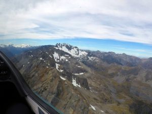 So ging es im Gleitflug von Bergkette zu Bergkette, am Hang entlang, die Aufwinde nutzen um vielleicht den Mount Cook zu erreichen. Atemberaubend, die Berge zum greifen nah an den wir vorbei glitten. Nur getragen vom Wind, der es zu diesem Zeitpunkt gut mit uns meinte und wir im Gleitflug kaum Höhe verloren. Nun mussten wir wieder ein etwas breiteres Tal überqueren um am nächsten Hang wieder den Aufwind nutzen zu können. Leider spielte nun der Wind nicht mehr so gut mit. Wir suchten, fanden aber nichts passendes. So ging es dann doch langsam zurück, da wir sonst über die Zeit kommen würden. Der Rückweg war unerwartet mühselig und wir versuchten immer wieder einen Lift zu finden, der uns noch in die entsprechende Höhe bringt damit wir sicher auf dem Airfield landen können. Es half nichts, wir mussten weiter. Das kreisen an den Hängen reichte nicht aus. Notfalls erklärte mir Norbert, können wir hier fast überall landen. Alles Flach, kein Problem;)