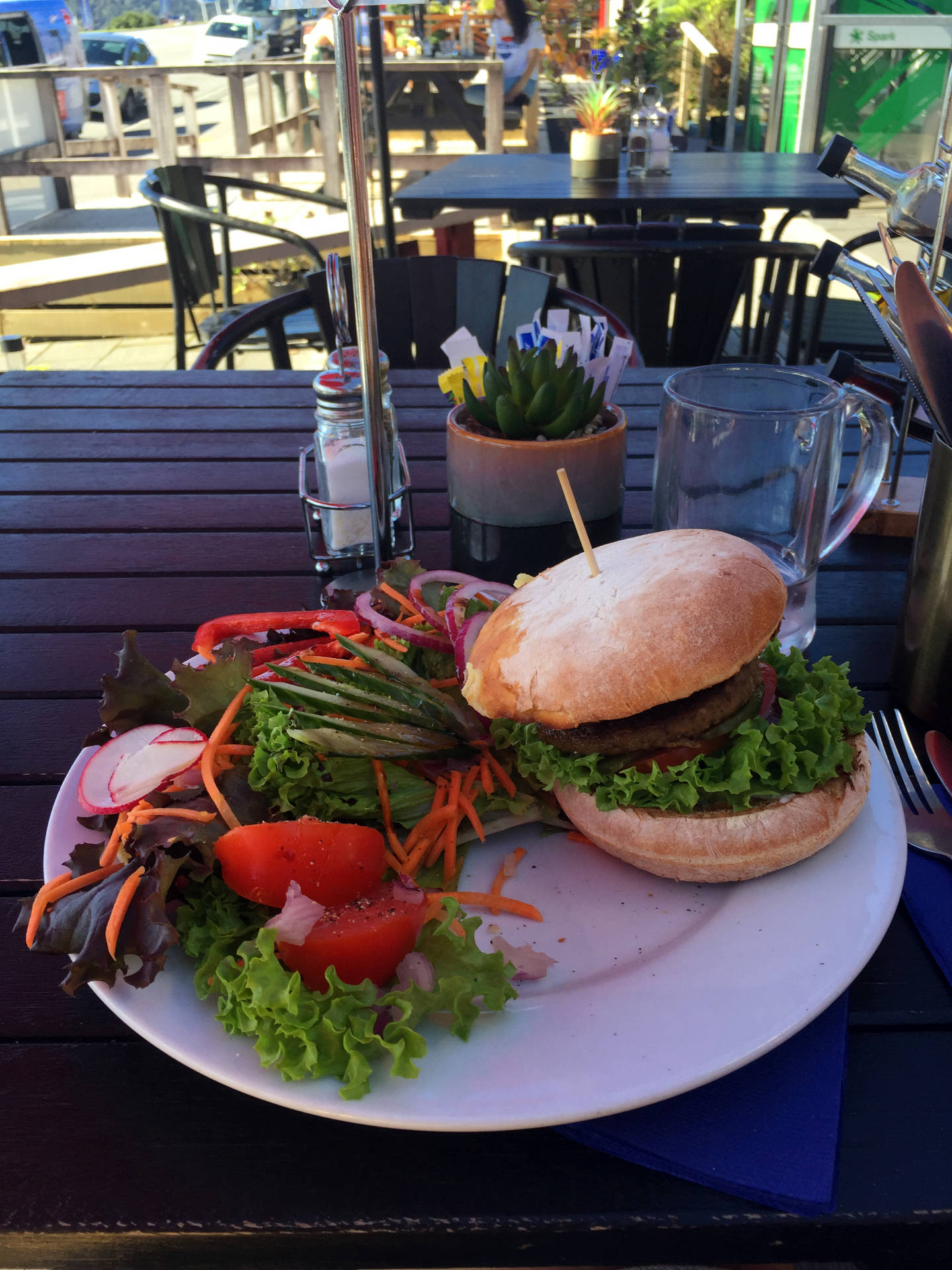 Am Abend war ich dann fix und alle und mochte nicht mehr kochen. So blieb die Küche kalt und ich ging in …. das Café Neve und gönnte mir einen anständigen Burger mit Salat!