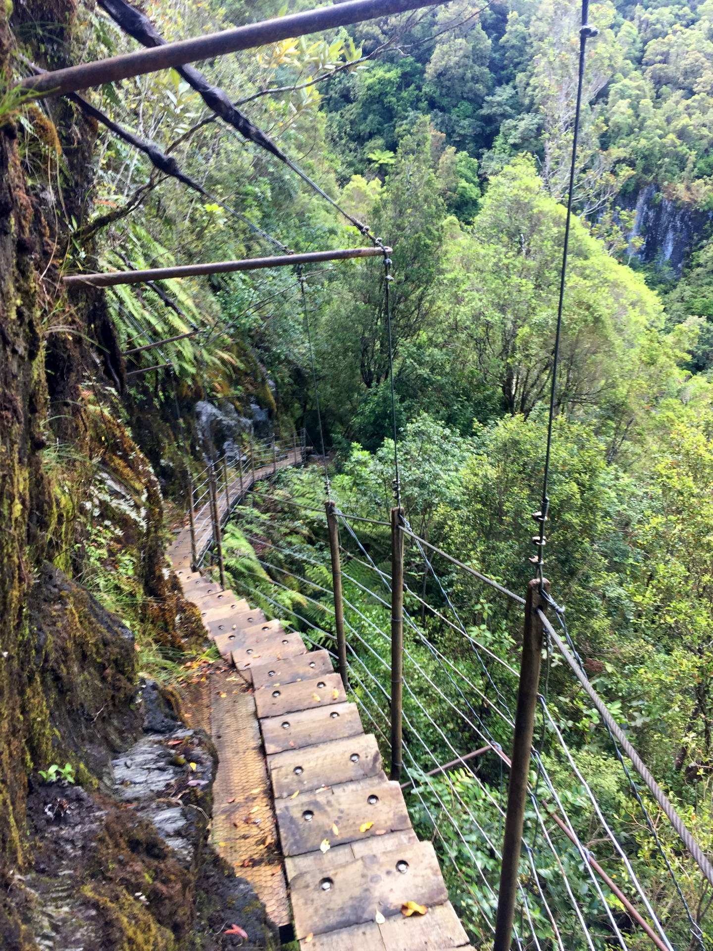 Kurz hinter der Ortschaft Franz Josef geht es dann links Richtung Gletscher. Was für ein Anblick und ich wurde schon ganz unruhig. Der große Parkplatz war zu meiner Freunde noch recht leer und ich machte mich mit meinem vorbereiteten Rucksack gleich auf den Weg Richtung Gletscher. Ich hab mir den Roberts Point Track ausgesucht, der einen Blick von etwas oberhalb auf den Gletscher bieten soll. Der Weg führte durch einen mächtig feuchten Dschungel. Mose und Flechten überall und nur die Tritte der Wanderer waren frei davon. Wasserfälle, Schluchten und schöne lange Hängebrücken, die wohl die Neuseeländer lieben. Ein sehr abwechslungsreicher Weg der teilweise aber sehr steil nach oben führt. So musste ich schnell meine Kamera verstauen, da auch das Vordergeläuf benötigt wurde. Über so manche Wurzel die herausragt war man froh, denn sie bot besseren Halt als die Moosbewachsen Steine. Kurz vordem Ziel öffnete sich dann der Wald und man war da. Wow! So direkt vor der Nase mit einem mal. Es war ruhig hier oben. Nur vier Wanderer die wir gemeinsam genossen. Einen keinen Wermutstropfen gab es allerdings. Es fliegen hier sehr viele Hubschrauber, die einige Wanderer auf den Gletscher bringen, um dort Wanderungen zu machen. Dennoch bleibt es eine beeindruckende Landschaft und den Weg kann ich nur Empfehlen. Aber wenn ihr Ruhe möchte geht früh los. Auf dem Rückweg gab es viel Gegenverkehr!
