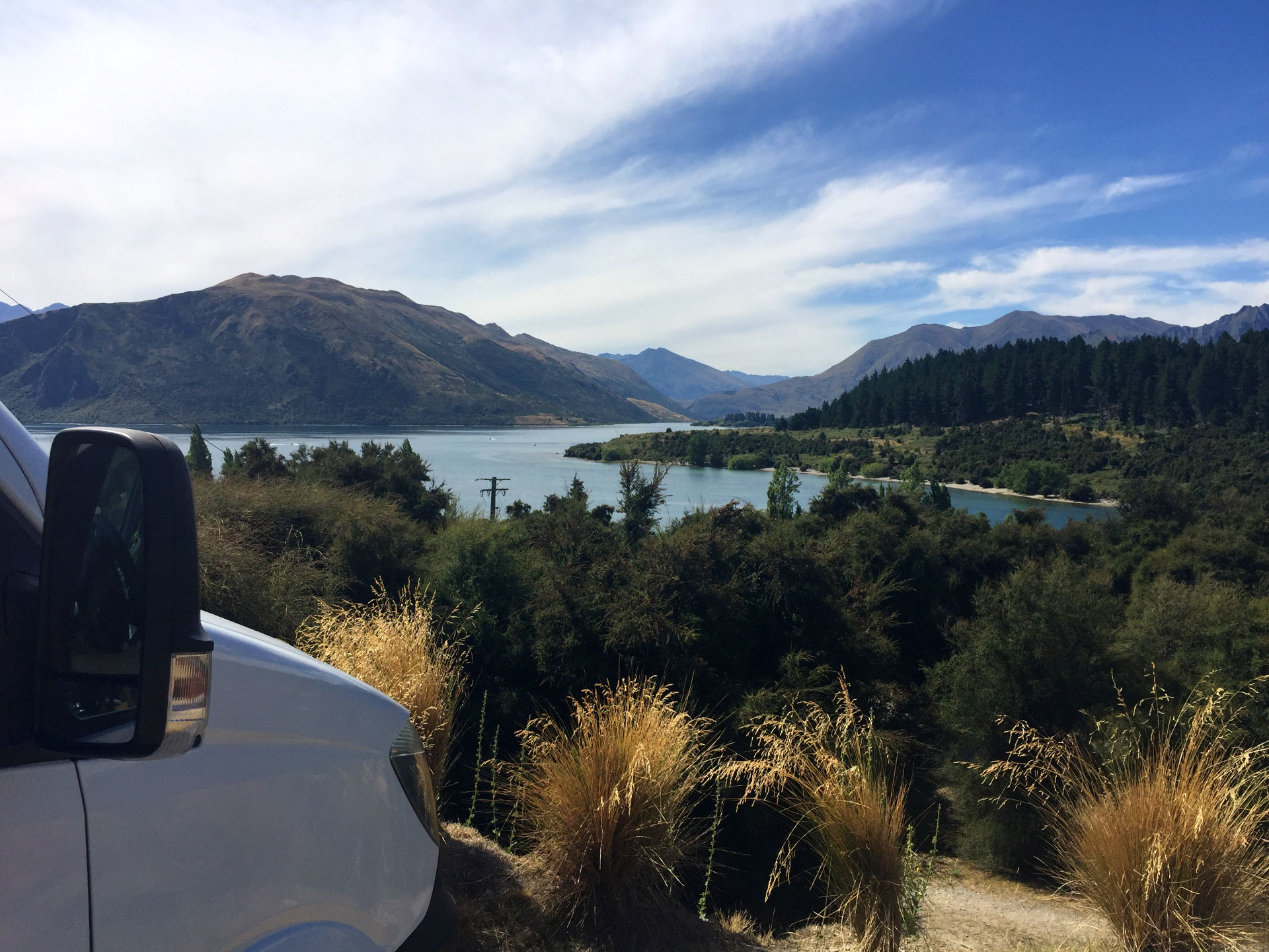 Kurz hinter dem Pass ändert sich dann die Landschaft relativ schnell. Der Wald wird spärlicher und es wird zum steppenartigen Hochland. Die ersten Scharfe und Rinder waren wieder zu sehen und dann erschien im dunklem blau der Lake Wanaka. Ein riesiger See von 42km länge.  Der Lake Hawea , ein weiterer Gletschersee, liegt gleich neben ihm und ist nur unwesentlich kleiner. Unglaubliche Farben eingebettet in einem grau-braun der übrigen Landschaft.