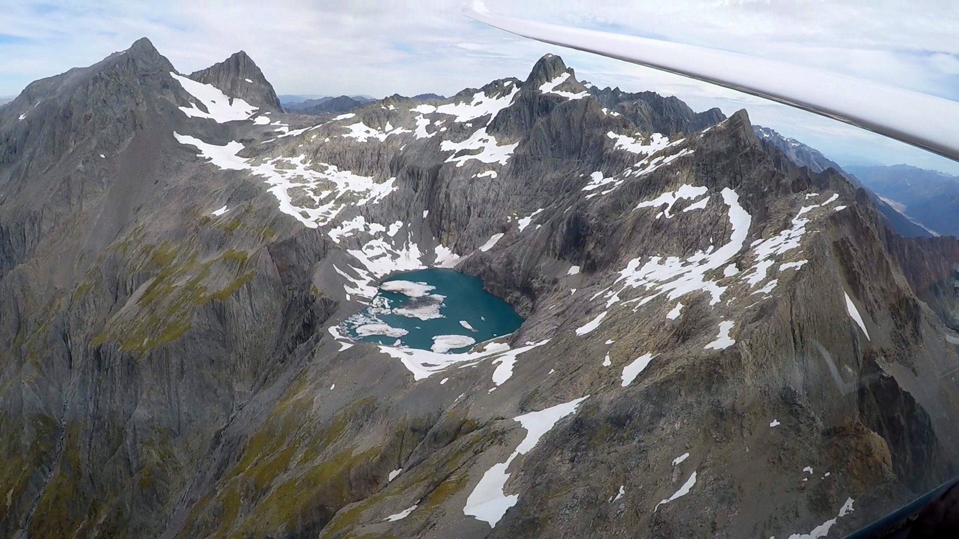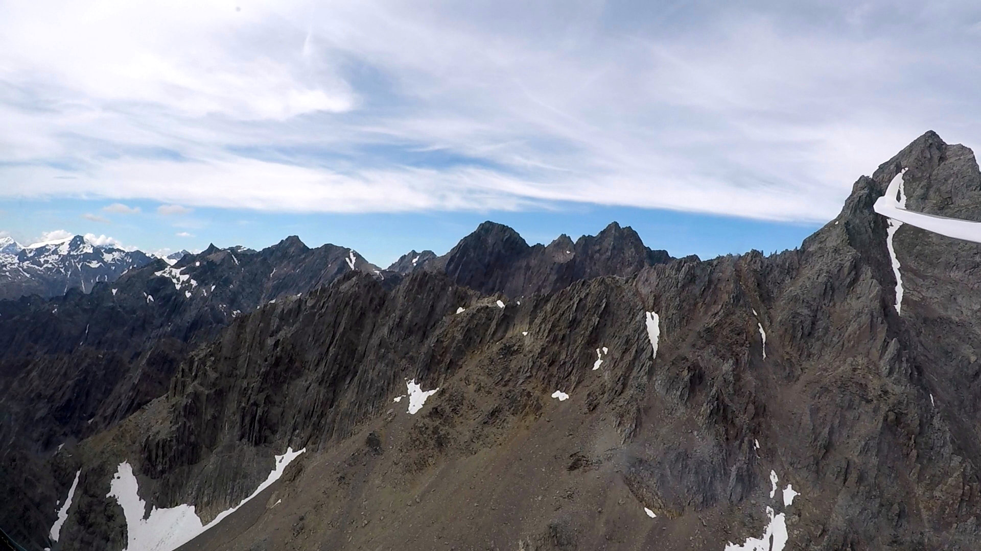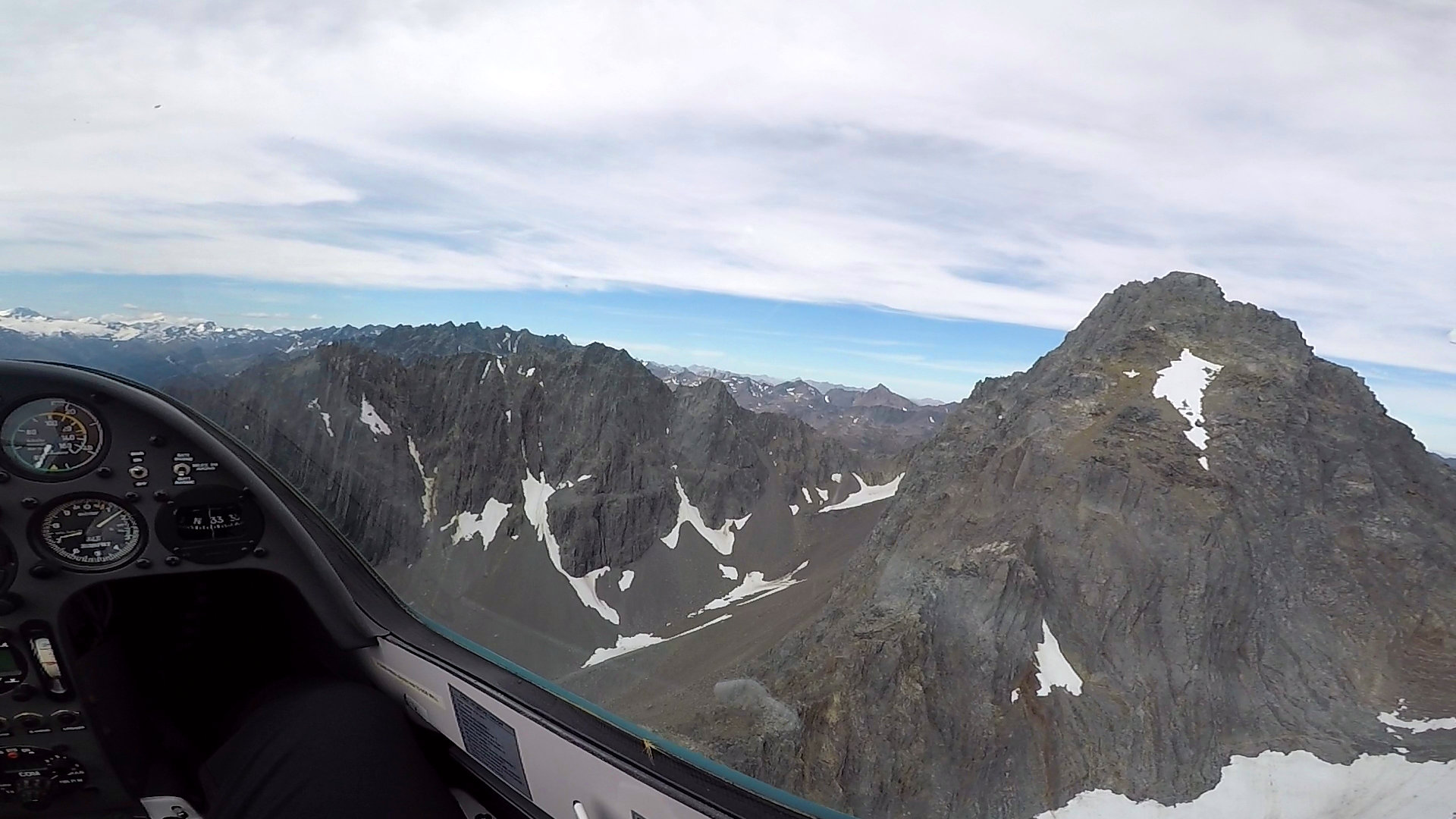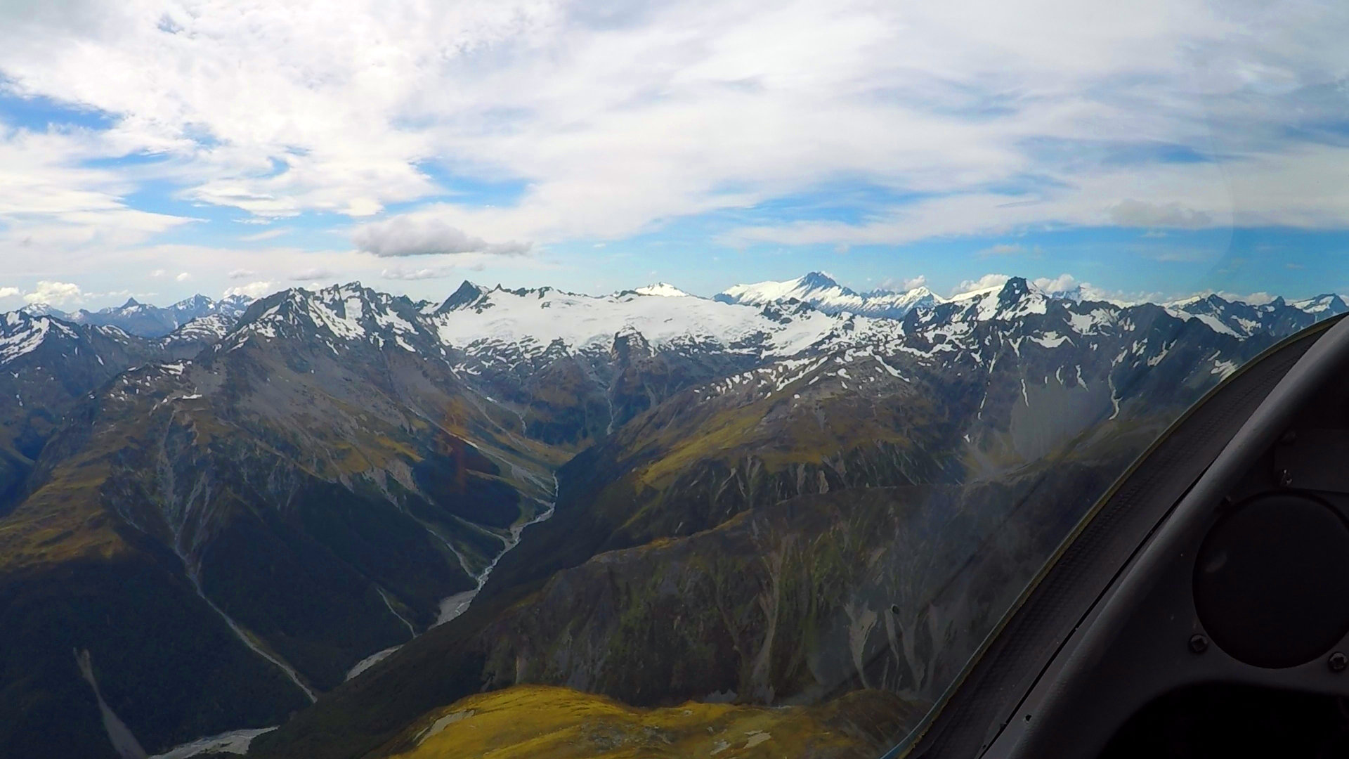 So ging es im Gleitflug von Bergkette zu Bergkette, am Hang entlang, die Aufwinde nutzen um vielleicht den Mount Cook zu erreichen. Atemberaubend, die Berge zum greifen nah an den wir vorbei glitten. Nur getragen vom Wind, der es zu diesem Zeitpunkt gut mit uns meinte und wir im Gleitflug kaum Höhe verloren. Nun mussten wir wieder ein etwas breiteres Tal überqueren um am nächsten Hang wieder den Aufwind nutzen zu können. Leider spielte nun der Wind nicht mehr so gut mit. Wir suchten, fanden aber nichts passendes. So ging es dann doch langsam zurück, da wir sonst über die Zeit kommen würden. Der Rückweg war unerwartet mühselig und wir versuchten immer wieder einen Lift zu finden, der uns noch in die entsprechende Höhe bringt damit wir sicher auf dem Airfield landen können. Es half nichts, wir mussten weiter. Das kreisen an den Hängen reichte nicht aus. Notfalls erklärte mir Norbert, können wir hier fast überall landen. Alles Flach, kein Problem;)