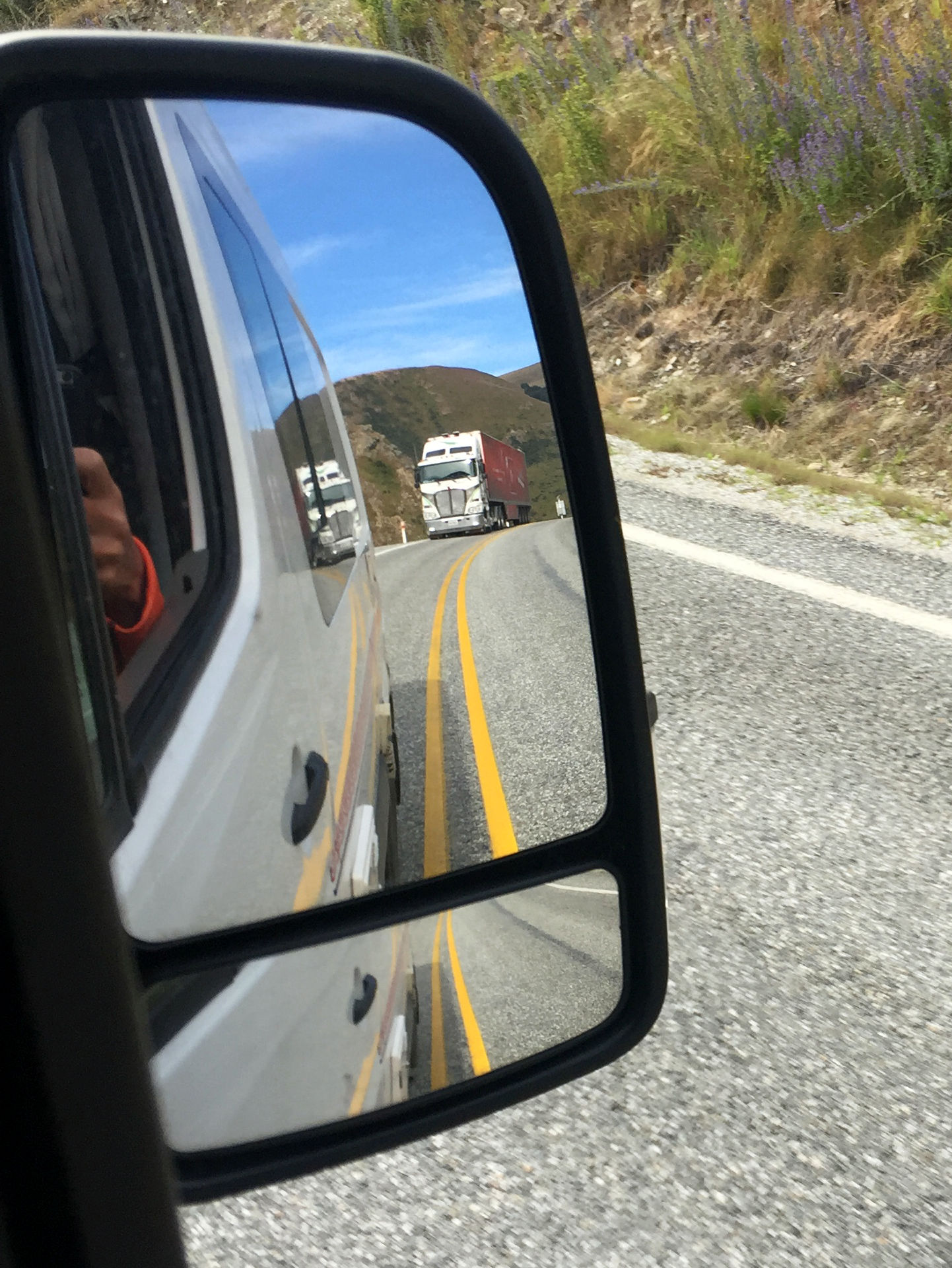 Was saht ich denn da! Die beiden gestrandeten standen an meinem Camper! Ich sah sie schon von weiten und überlegte, ob sie vielleicht was in meinem Camper verloren haben könnten? Beim Ein- und Ausladen viel nämlich das eine oder das andere heraus und verteilte sich im Camper inkl. seinem Geldbeutel! Nein, es war alles in Ordnung und die beiden schauten nur noch mal nach dem Auto nachdem sie wieder abgetrocknet waren und in frischen Kleidern steckten. Sie baten mich nur noch mal, ob ich sie nicht nochmal mit zum Hotel mitnehmen könnte, denn es wäre so steil den Berg hinauf. Klar! Ihr müsst wissen die Straßen in Queenstown sind wirklich steil. Man denkt oft man steht förmlich vor einer Wand. Bei solch mancher Straße hätte ich Angst mit dem Smart zu fahren! Der würde wohl wirklich auf der Heckklappe landen.