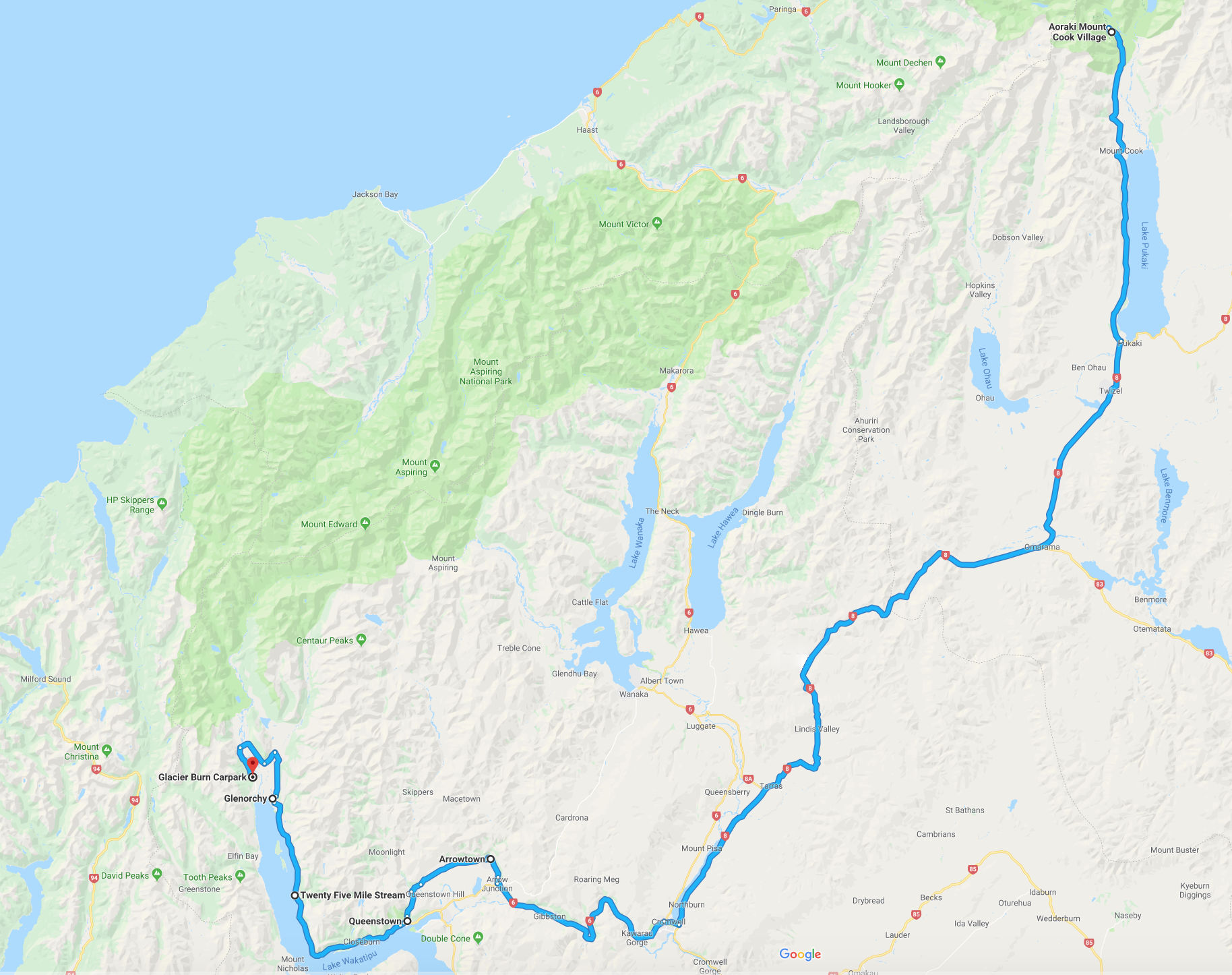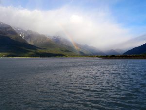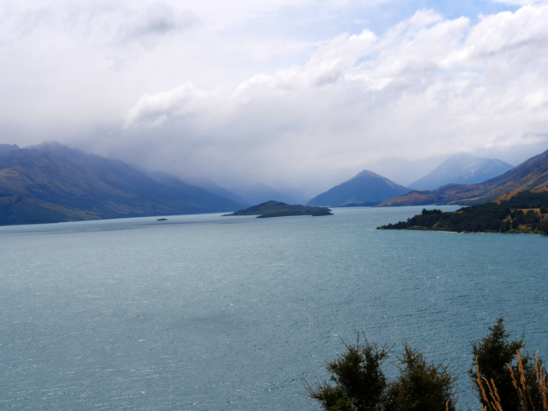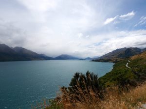 Bei einer 2. Tasse Kaffee und meinem Müsli verweilte ich in Glenorchy direkt am Lake. Leider passierte nichts unerwartetes 🙁 Der Regen zog auf und ich brach meine Zelte hier nun ab. Bis Queenstown begleiteten mich noch zwei Studenten aus Dunedin, die das Wochenende zum Wandern hier waren. Sie schrieben mir noch ein paar Tips für Dunedin auf und klebten sie mir in meine Straßenkarte bevor sich unsere Wege wieder trennten. Nun geht es ins Fiordland, dem größten Nationalpark Neuseelands.