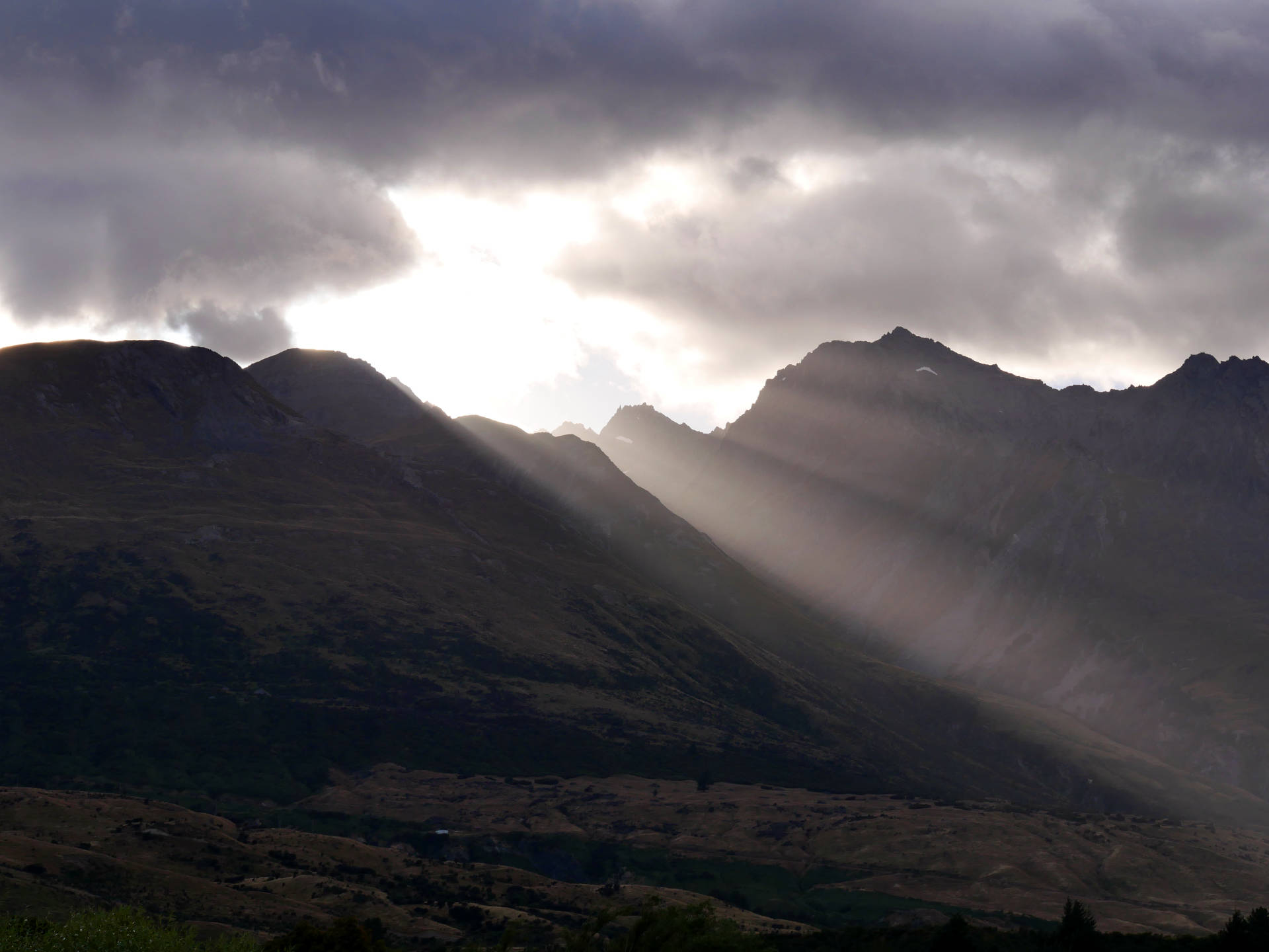 Die Fahrt am Lake war fantastisch und wieder voll nach meinem Geschmack. Dazu diese mystische Stimmung, Berge, Wolken und die Sonne. Es passte einfach zu meinen Vorstellungen und gleich werde ich auf Saruman und seine Orks treffen! Angekommen in Glenorchy war erst einmal wieder Wirklichkeit angesagt. Ein ganz beschaulicher, geschichtlicher Ort von dem man aber nicht zu viel erwarten durfte, aber dennoch wundervoll gelegen. Mittlerweile setzte wieder der Regen ein und ich wollte dem kleinen, netten Café gegenüber einen Besuch abstatten. Leider restlos überfüllt. Alle zwei Tische innen waren Belegt und weitere Gäste warteten bereits 😉 Zurück im Camper genoss ich noch ein wenig die Stimmung am Lake bei einem Kaffee aus eigenem Aufguss und machte mich dann auf in Richtung Isengard, denn es war schon später Nachmittag.
