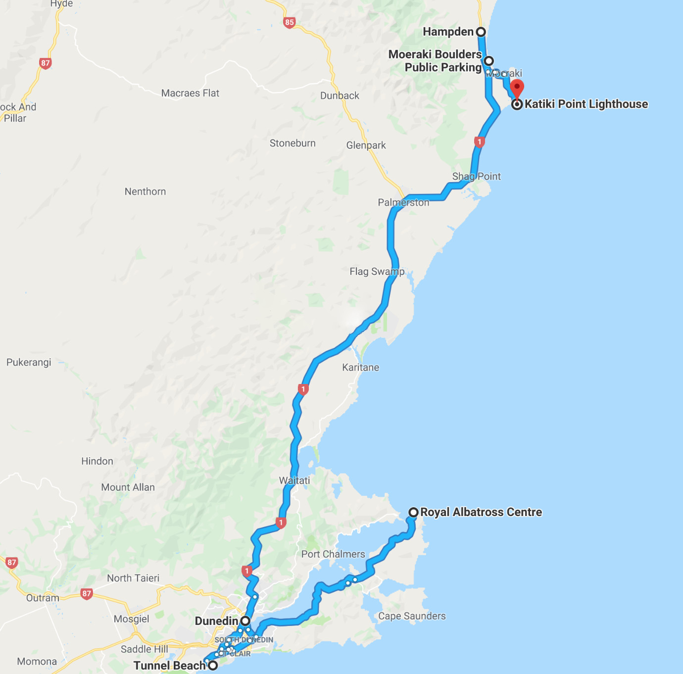 Kurz hinter Hampden wird die Landschaft extrem Flach und die Straßen frühen lange gerade aus. Selbst mit dem Abbiegen ins Inland wurde es nicht viel besser. 10-15 km nur gerade aus, da würde selbst einem Autopiloten langweilig werden. Die einzige Abwechslung die es gab waren extrem viele alte und wunderschöne Oldtimer, die heute hier unterwegs waren.