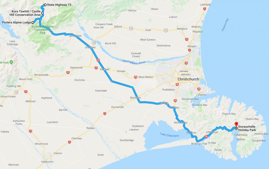 Am nächsten Morgen wollte ich wieder zurück in die Berge. So beschloss ich Richtung Arthur’s Pass zu fahren. Erst an der Küste entlang und dann über die Inland Scenic Route, der SH72.