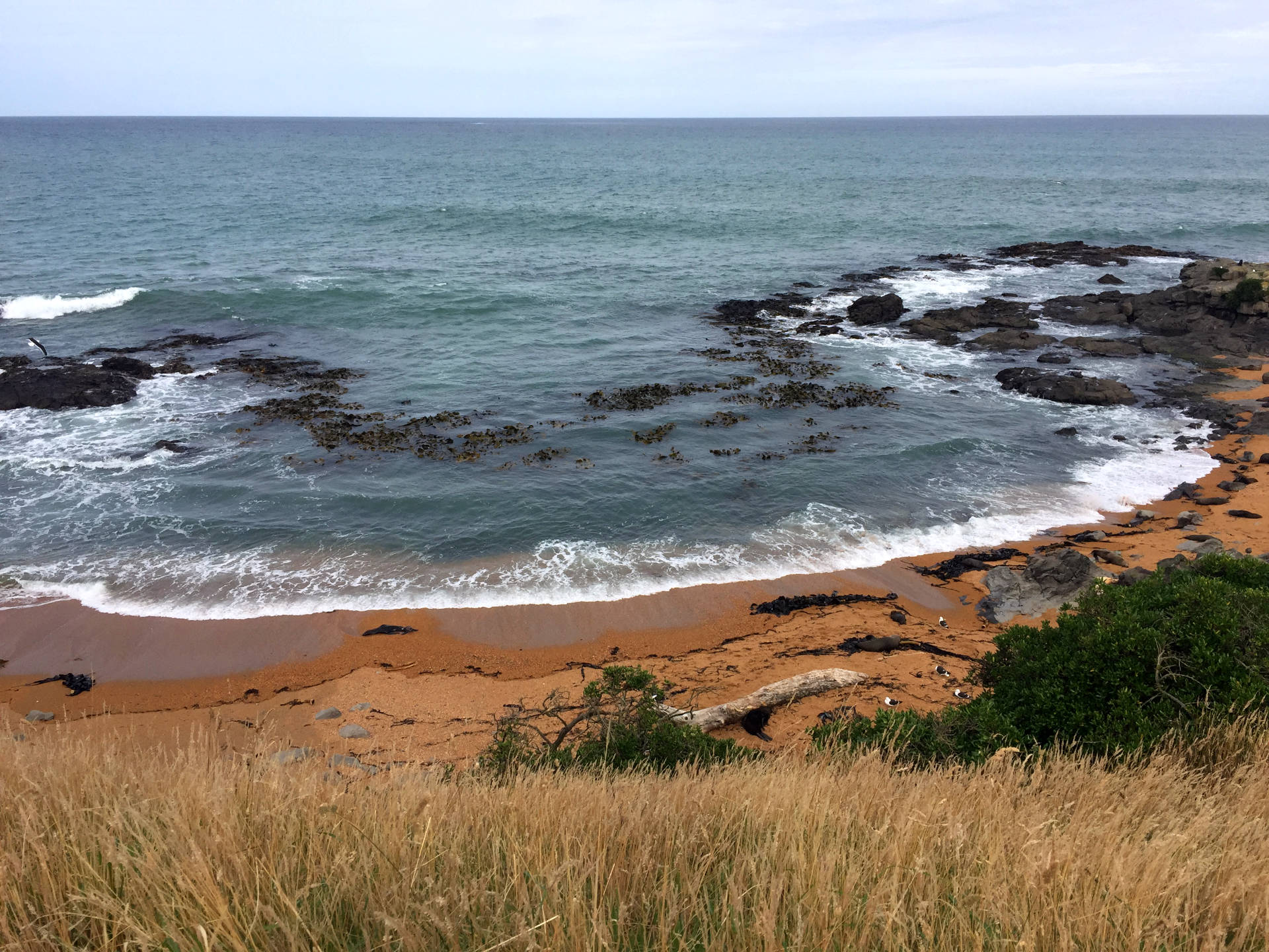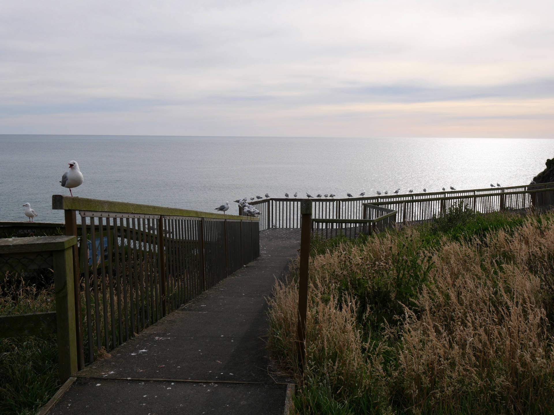 Nun schaute ich mich um, was es denn sonst noch interessantes hier geben könnte und entdeckte eine Aussichtsplattform an der Steilküste. Auch hier war es nicht einfach einen gehbaren Weg zu finden. Die vermeintlich sichere Wiese war nicht sicher 🙂 An der Aussichtsplattform war es aber auch nicht viel besser. Wenigstens gab es aber keine Tiefflieger! Nein, hier gefällt es mir nicht und ich verzichte auf Pinguine und Albatrosse. Auf zum Camper, der sich bereits langsam der Umgebung hinsichtlich Hinterlassenschaften anpasste. Meine Badelatschen verbannte ich in eine Tüte, denn sie sahen nicht mehr wirklich appetitlich aus.