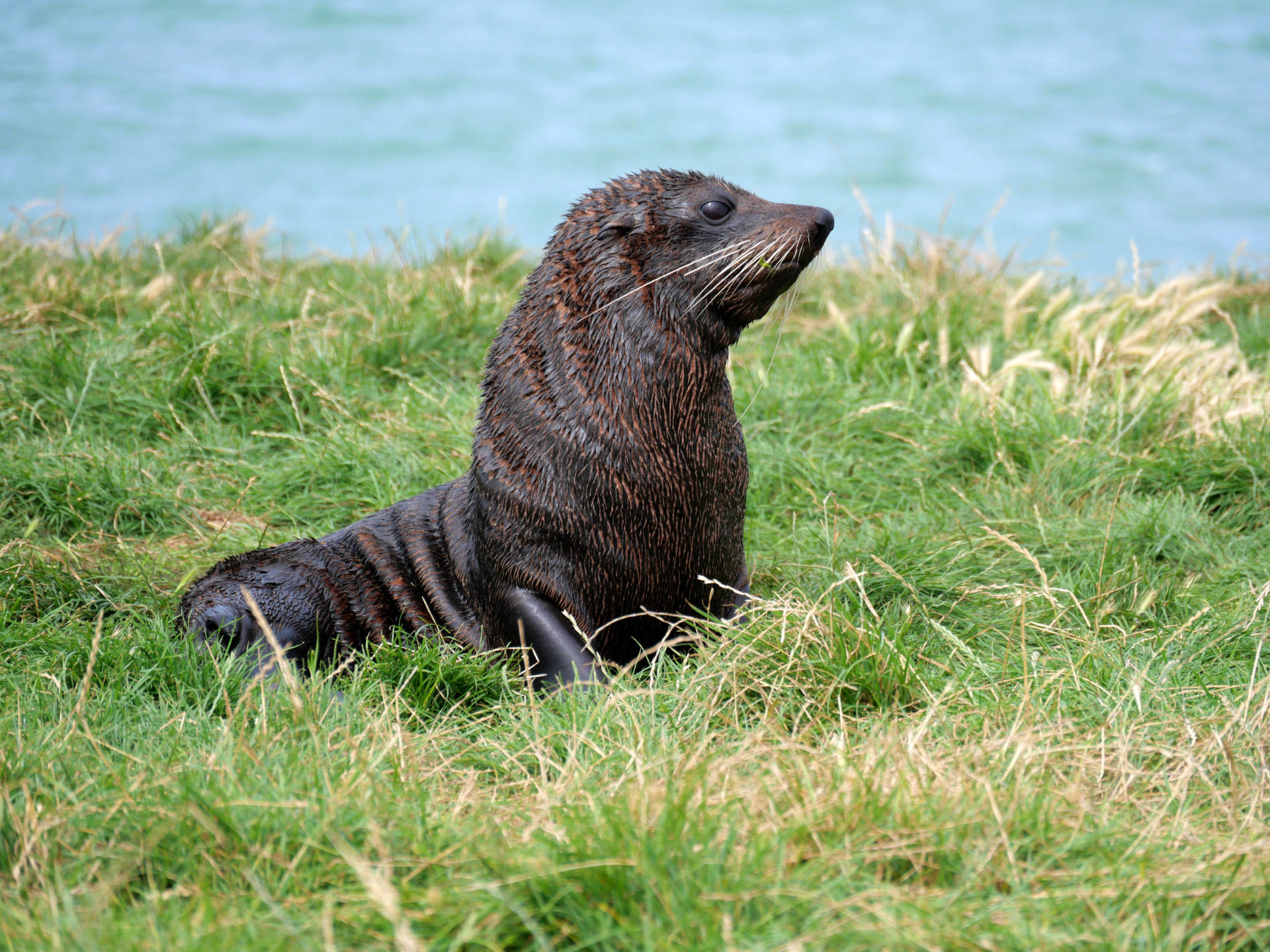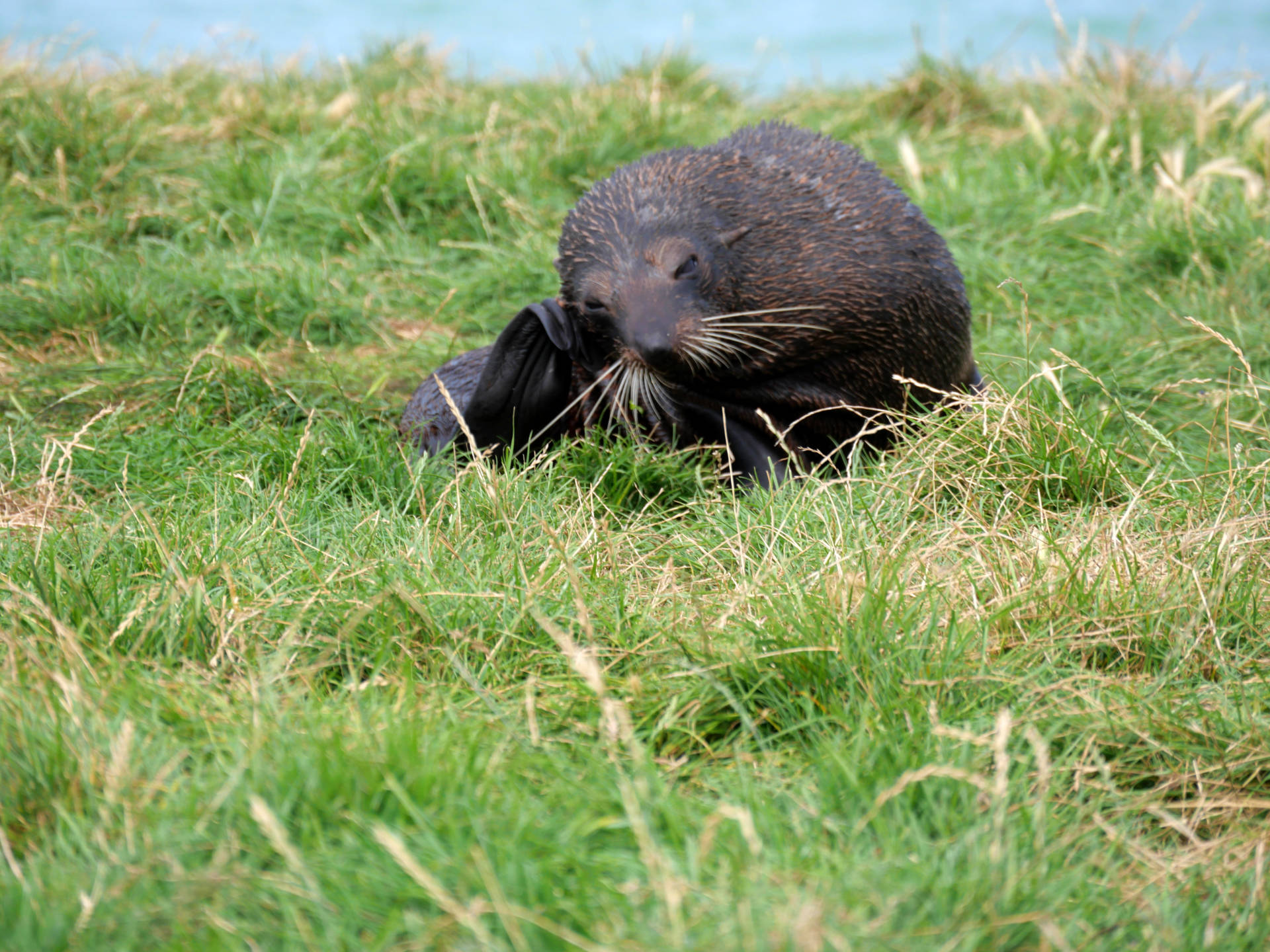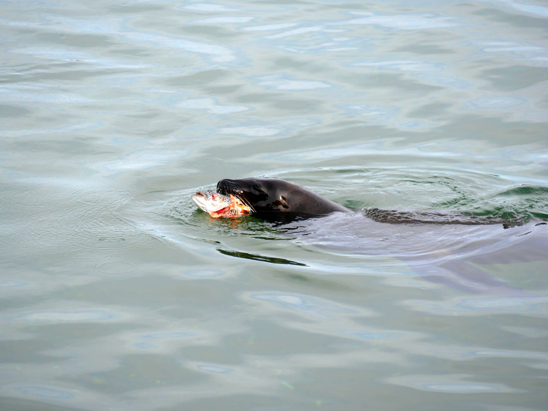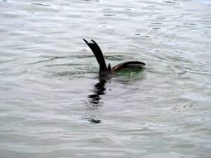 Nun ja, so fuhr ich langsam an der Küste zurück. Dann tauchte zu meiner rechten plötzlich etwas aus dem Wasser auf! Ein Seelöwe … er war am jagen! Ich hielt sofort an und schaut mir das Schauspiel an. Der Kerl ließ sich nicht stören und verspeiste in kurzer Hand zwei Fische in meiner Anwesenheit. Beim zweiten begann er auch noch mit der Beute zu spielen und kam auch immer näher ans Ufer. Es war toll ihn so beobachten zu können.