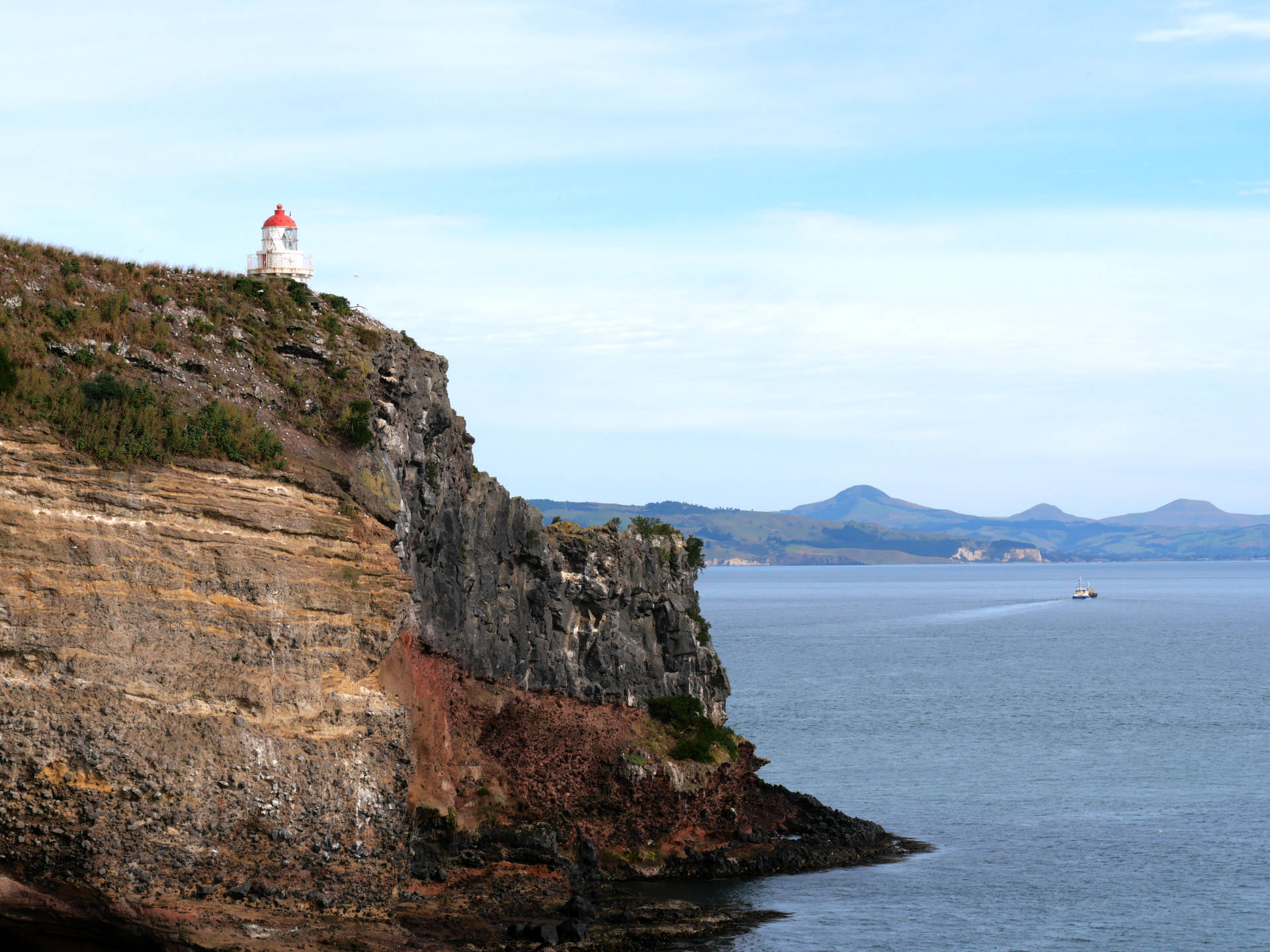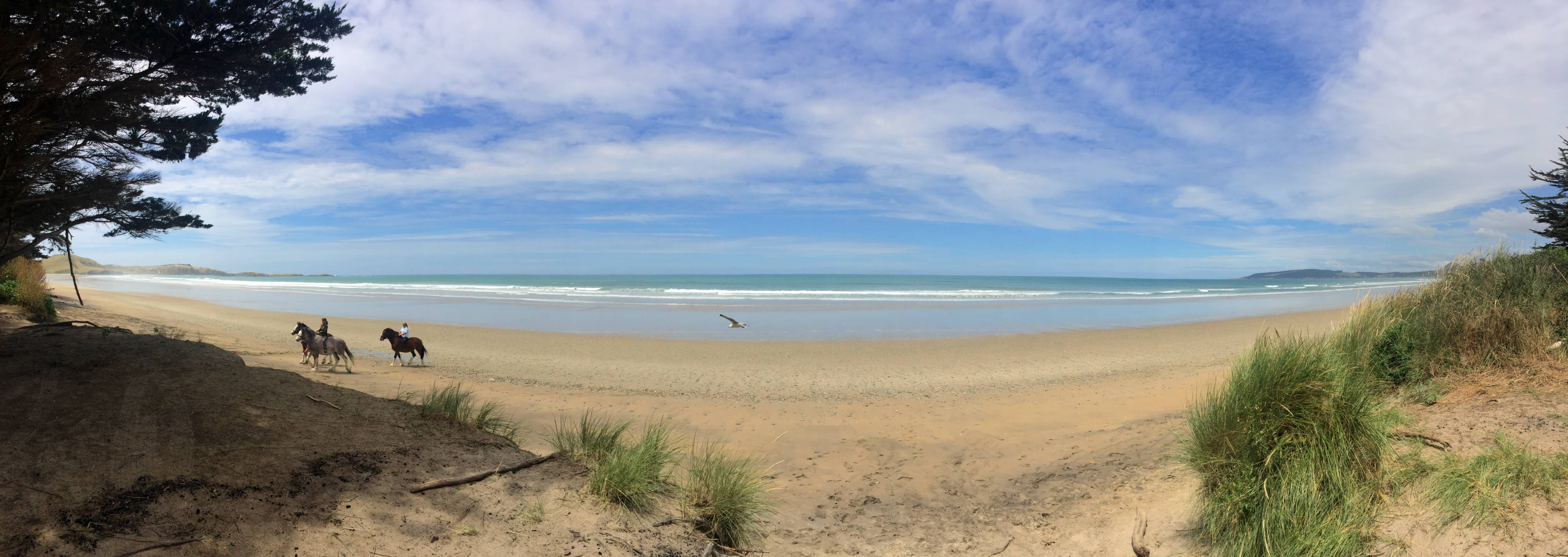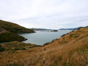 Am Morgen um kurz nach 6 Uhr fuhr ich gleich los ohne etwas. Nur raus aus der Stadt. Irgendwie bekomme ich den Drang eine Stadt wieder zu verlassen sobald ich sie erreicht habe. So fand ich gegenüber der City im Otago Habour einen einzelnen Platz, der einlud halt zu machen. Beim Frühstück machte ich dann ein paar Pläne für die nächsten Stunden.