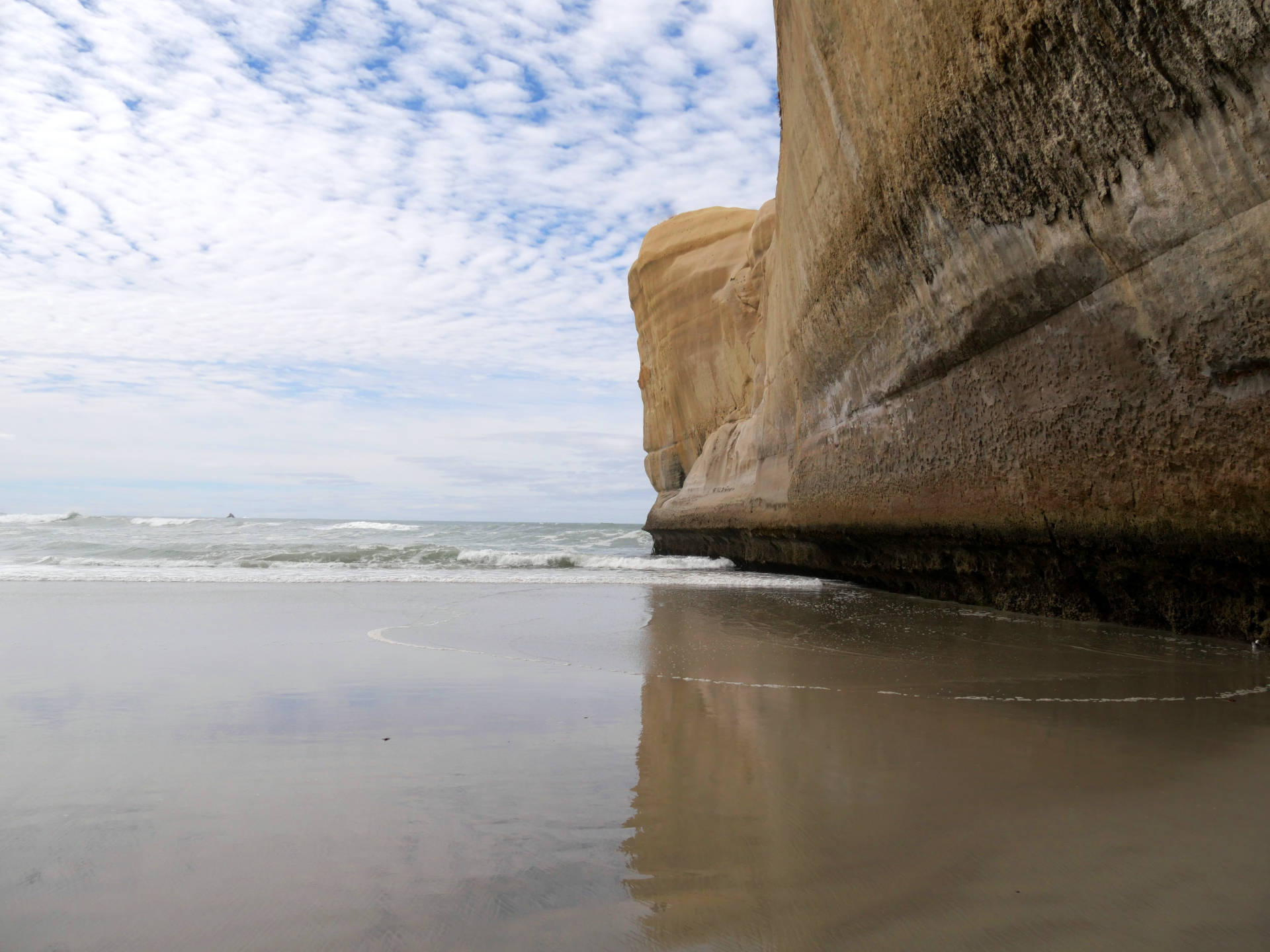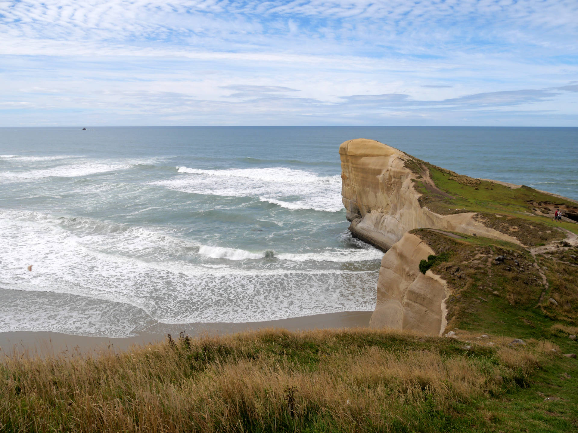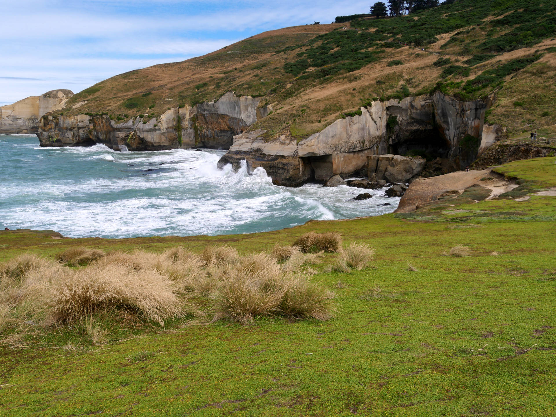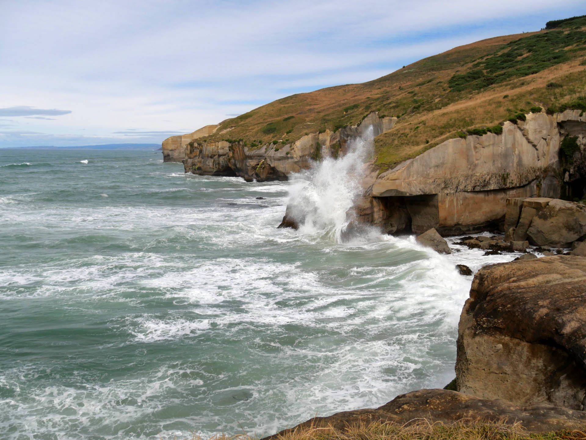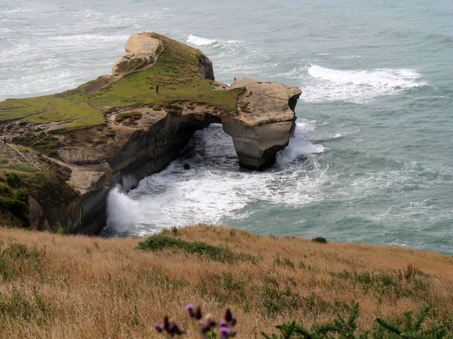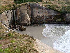 Die Tunnel Beach ist eine Steilküste aus Sandstein, die von dem Pazifik wunderschön geformt wurde. Wellen schlagen hier mit mächtiger Wucht gegen den Küste, das es jedes mal ein Wahnsinns Schauspiel ist dies zu beobachten. Die eigentliche Bucht läßt sich übrigens nur bei Niedrigwasser über einen kleinen Tunnel erreichen. Ich hatte wieder mal Glück und konnte dort eine Weile verweilen.