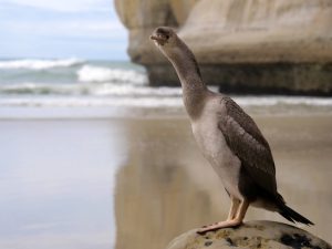 Als erstes begann ich die Halbinsel Otago Peninsula zu erkunden, denn an ihrer Spitze gab es Pinguine und Albatrosse zu sehen. Die Küstenstraße, die wirklich unmittelbar am Wasser verläuft, führt an viele kleine Buchten vorbei bis nach Portobello, einem kleinen beschaulichen Ort. Von hier geht es dann langsam hoch an die Spitze, wo der Leuchtturm und das Royal Albatross Centre zu finden sind. Am Royal Albatross Centre angekommen, dachte ich ich bin mal wieder in einen Film. Es passte alles wahrhaftig zusammen. Die Bucht, das Haus und die vielen Vögel. Ja, Alfred Hitchcock die Vögel 🙂 Draußen ein Gekreische von unzähligen Möwen, die auch das ganze Albatross Centre bevölkerten. Sie saßen auf den Geländern und Zäunen irgendwie überall. Dennoch stieg ich aus und suchte mir meinen Weg durch die Hinterlassenschaften der lieben Vögel. Als ich mich dem Gebäude näherte kam plötzlich eine Möwe im Tiefflug von hinten auf mich zu. Holla! Kurz danach eine zweite! Das reichte mir und ich machte kehrt. Sowas hab ich noch nicht erlebt. Ich hatte an der Tasman Bay einen Austernfischer der auf mich los ging, aber das lag daran das er gebrütet hatte.