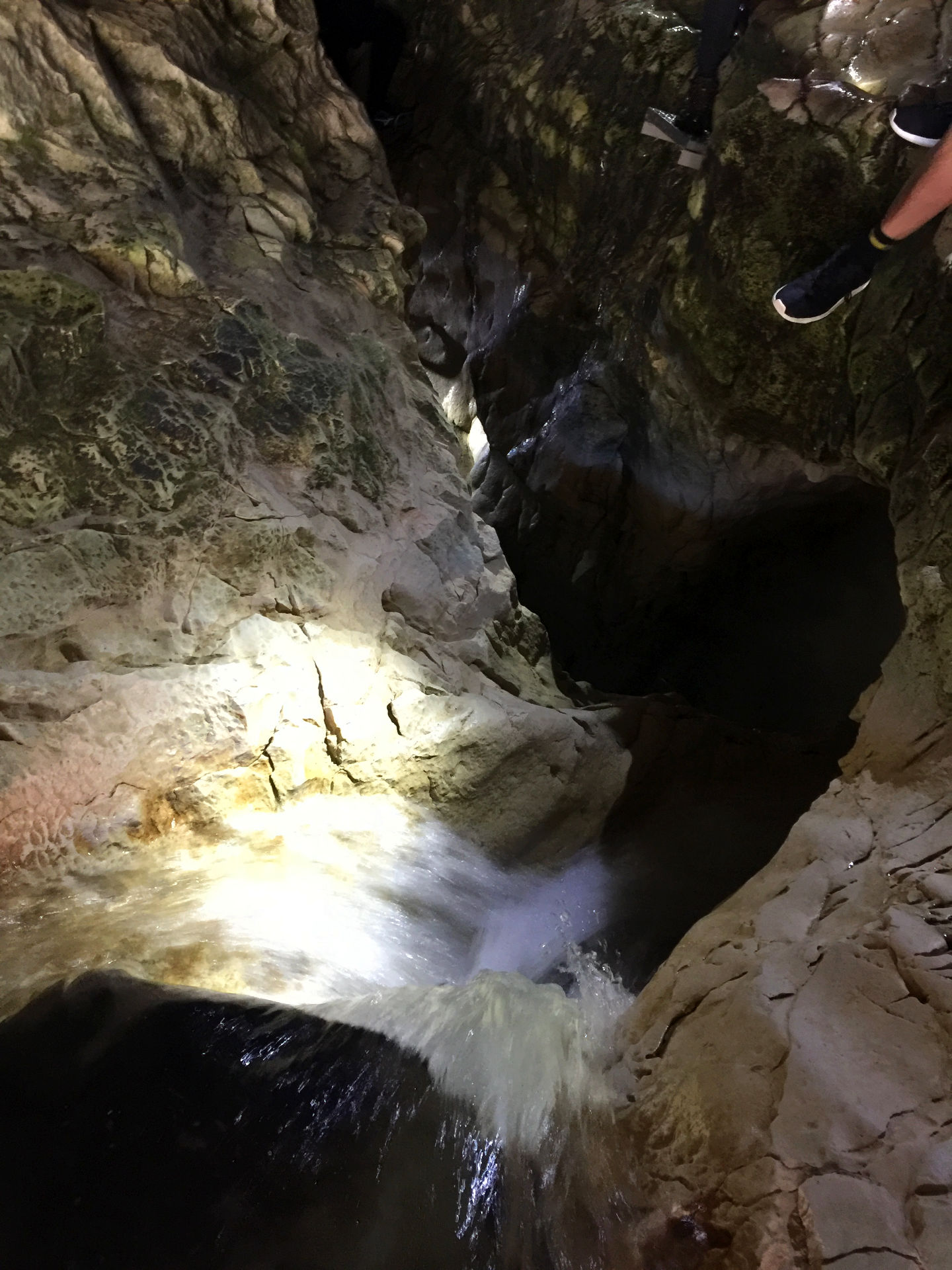 Da es für mich das erste ma war, wollte ich mich ein paar andern anschließen. Stirnlampe, warme Kleidung nicht aus Wolle, gutes Schuhwerk das nass werden darf und keine Angst vor Dunkelheit und kaltem Wasser. Ich muss sagen, das war eine Riesen Gaudi. Ich hab es gleich zwei mal gemacht, nachdem ich einmal abgetrocknet war. Beim ersten mal mit einer Gruppe und anschließend noch mal alleine. Sowas werde ich wieder machen und ich kann jedem das hier nur empfehlen, der Spaß an sowas hätte. Es sollte nur nicht regnen oder stark geregnet haben. Die Höhle ist ca. 600 m lang und man benötigt ca. 45 min hindurch. Das Wasser ging mir, bei 1,81m Körpergröße und bei niedrigen Wasserstand, bis zur Hüfte. Kletterpassagen sind nur minimal und mit Geduld jederzeit zu meistern. An warmen Tagen kann man gut in Shorts oder Badehose und T-Shirt sowie festem Schuhwerk gehen. Eine gute Stirnlampe ist ein absolutes muss. Ich hatte mir mein Handy als Notlösung für eine Beleuchtung eingepackt, sowie eine dünne lange Jacke, sollte irgend etwas passieren. Alles natürlich gut in einen wasserdichten Beutel verpackt, da es definitiv nass wird da unten 🙂